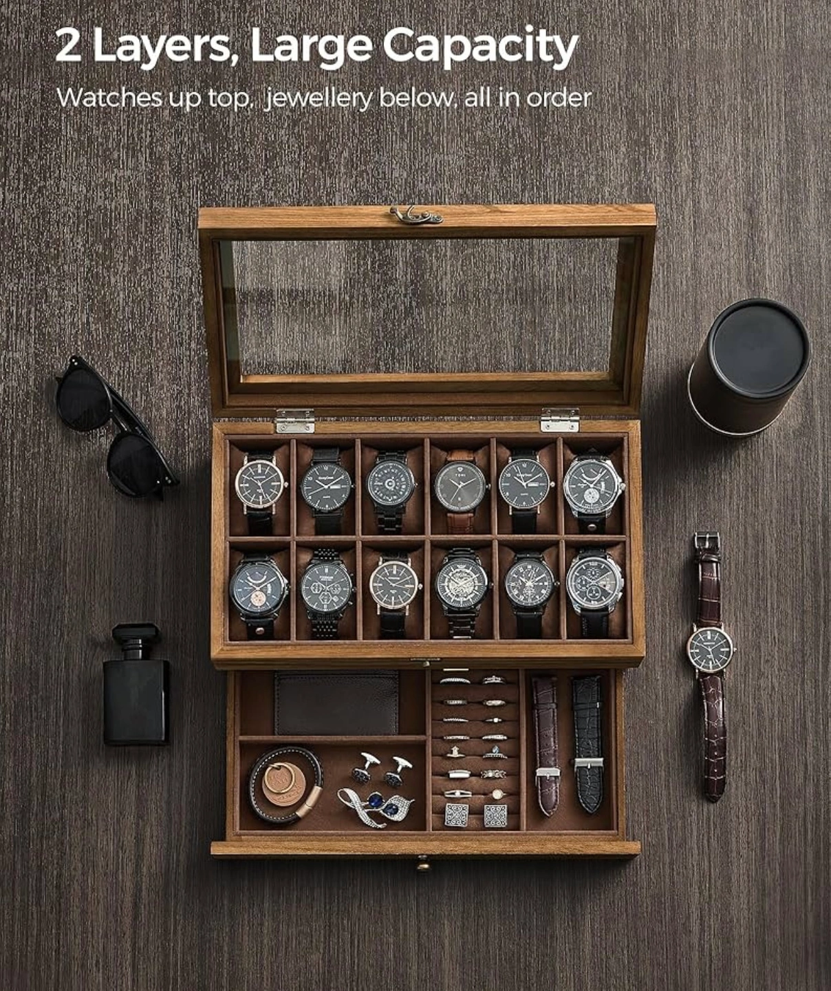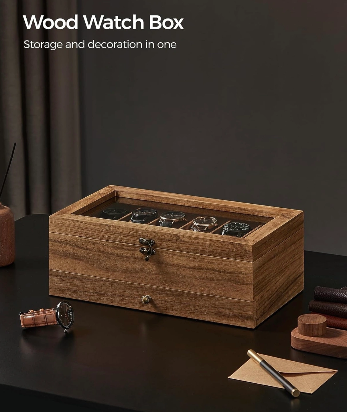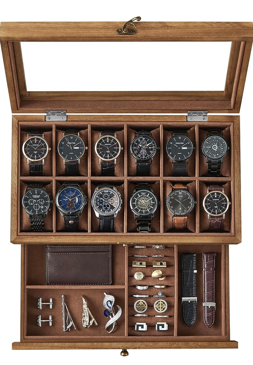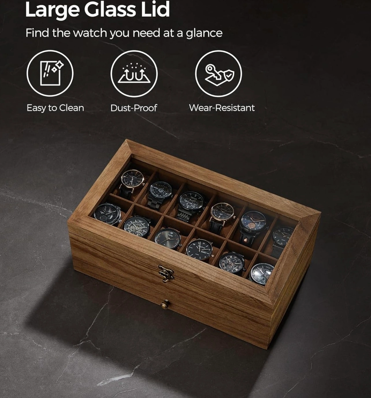 96Crafted with a sturdy wood frame outside and soft velvet inside, this watch box offers all-around protection for your watches from accidents and scratches. The soft-yet-supportive pillows keep them in good shape