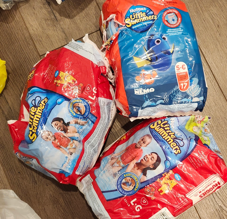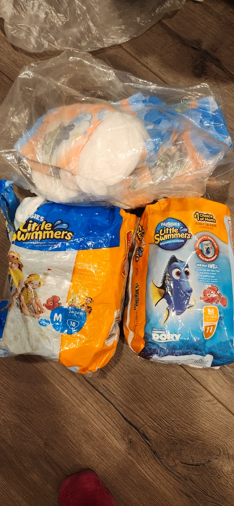 1) medium 24-32lbs: 7 pullups and 15 swimming diapers- all $3
