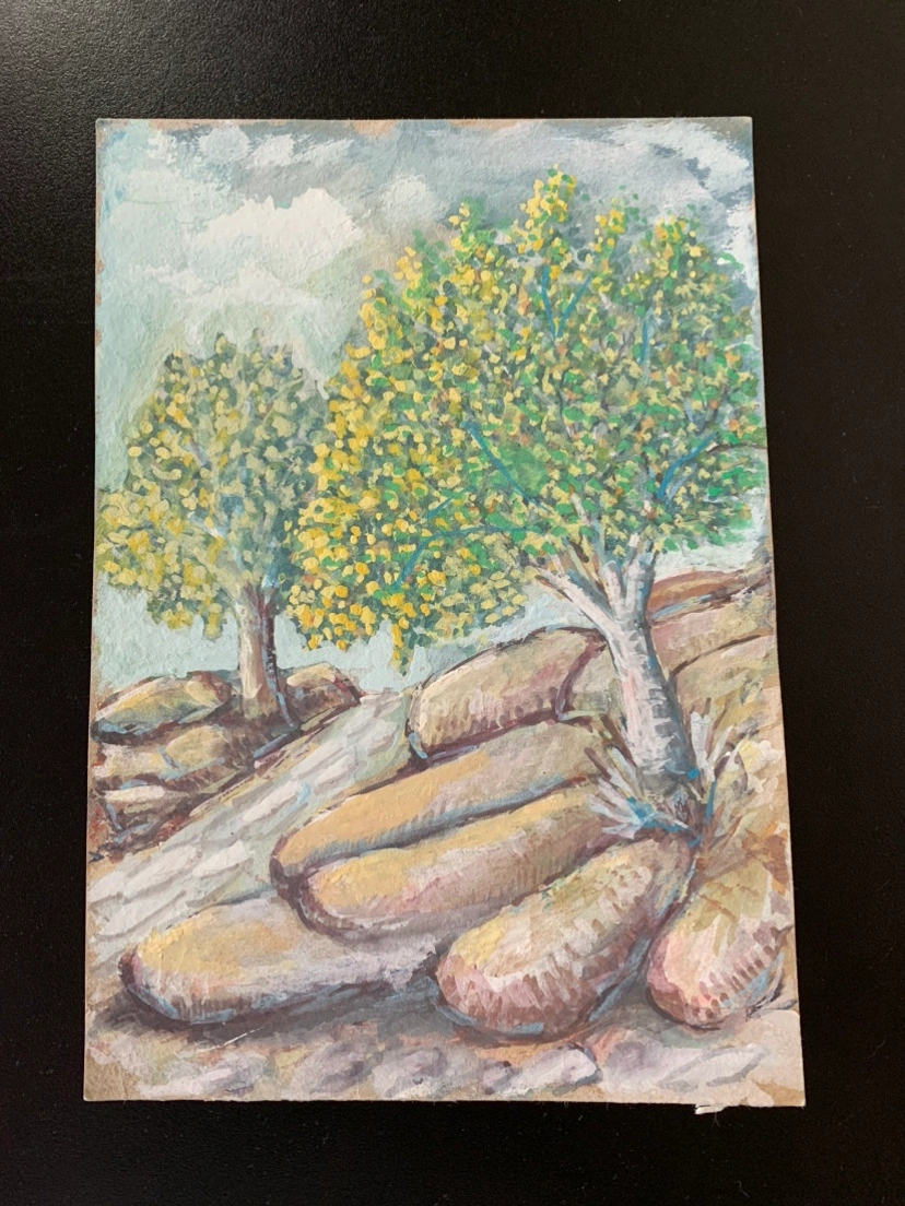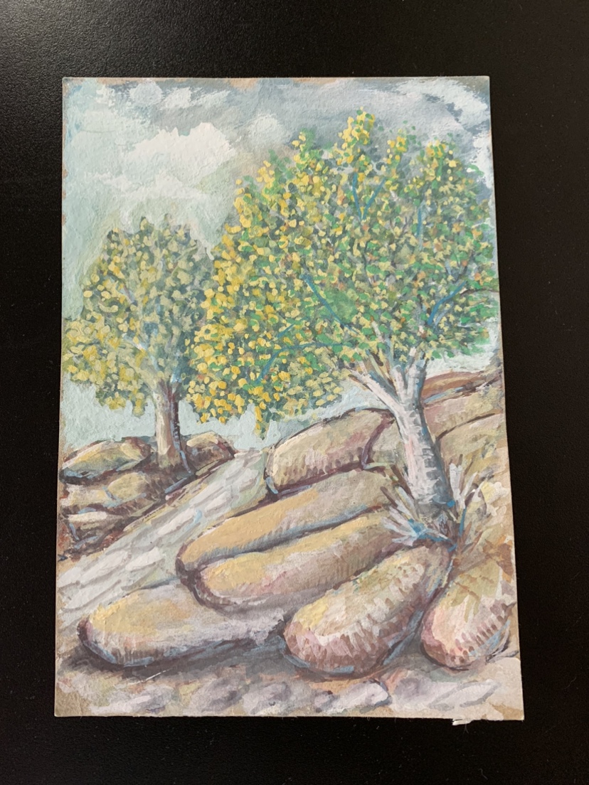 Handmade watercolour painting, gorgeously done! Painted early 80’s. Not used ( kept stored ). Dimensions: 15cm x 21cm.