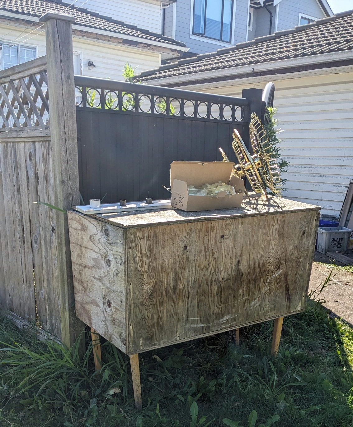 Chandelier light, Bath light , Wood Storage box #freecycle
