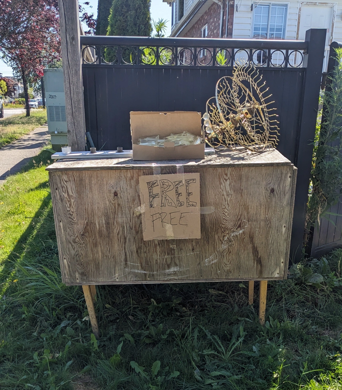 Chandelier light, Bath light, and Wood Storage are in great condition. We moved out to a new place. I want them to give away for Free. Pick up at 3288 26th Ave E Vancouver, BC near Chong Lee Market. Leave them in the backyard outside for you to pick up. If items are gone, will remove the post. Don't ask questions if it is available or not.