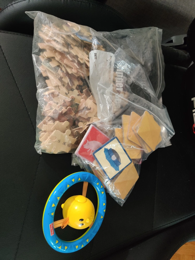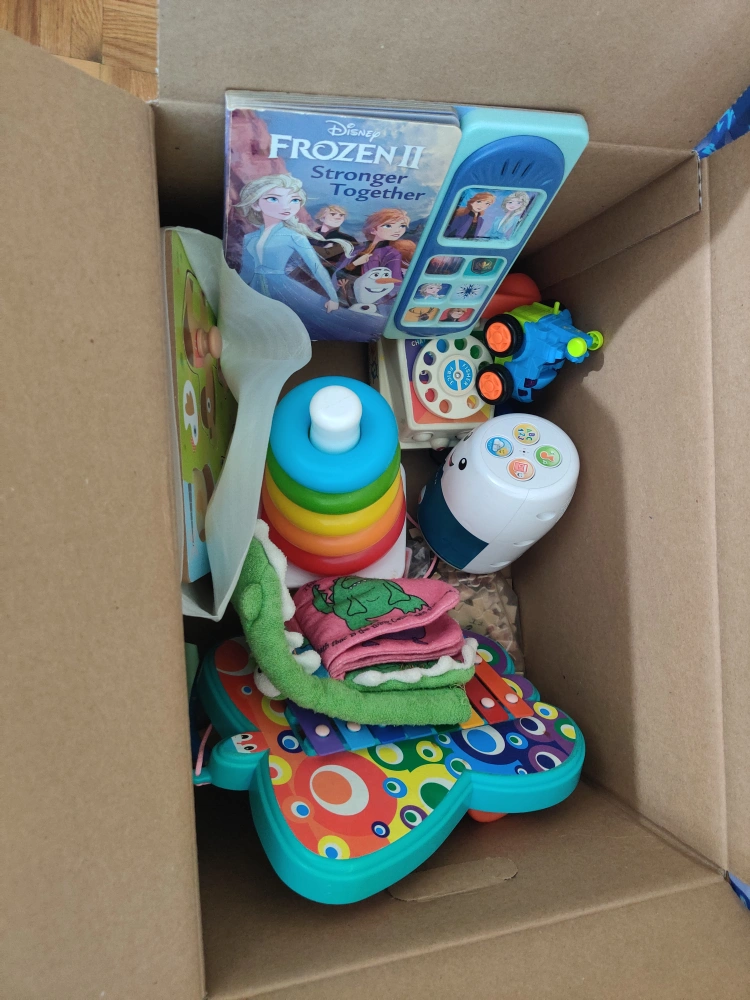 1) Speaker toy which plays music, news, numbers and songs (new battery needed)