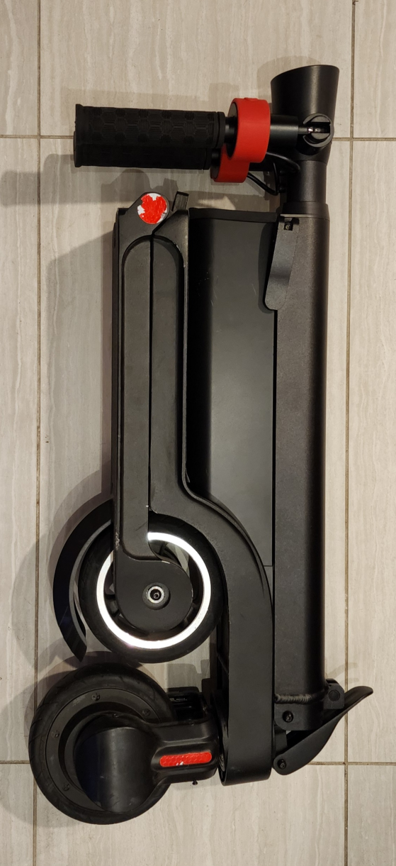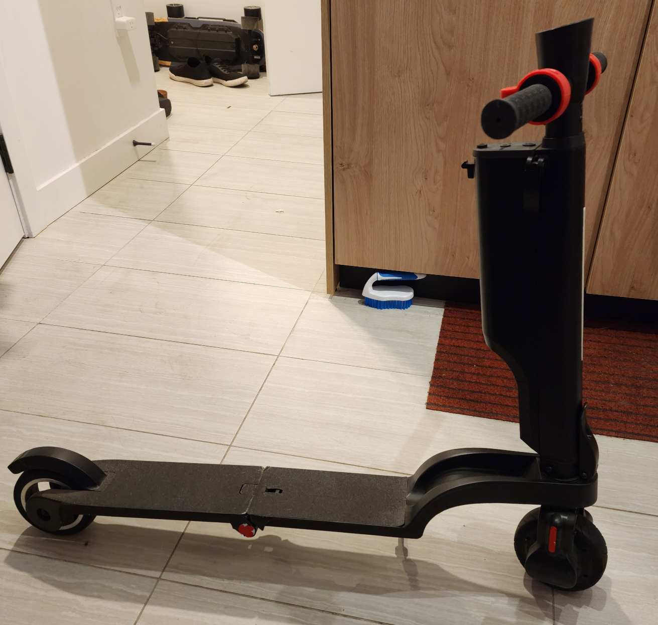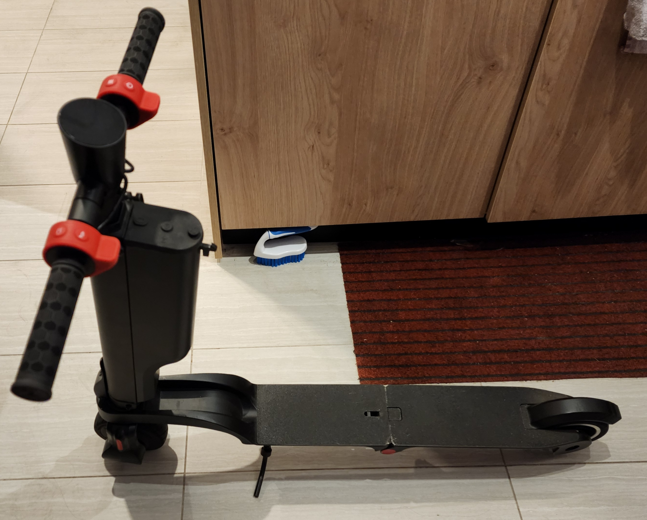 the battery is replaceable but you'll have to source it. but it's currently doing good. by nature of it being lighter and smaller, it can probably only take you about 5ish stations distance max, depending on the station so it's a perfect last mile vehicle you could put in your car etc.