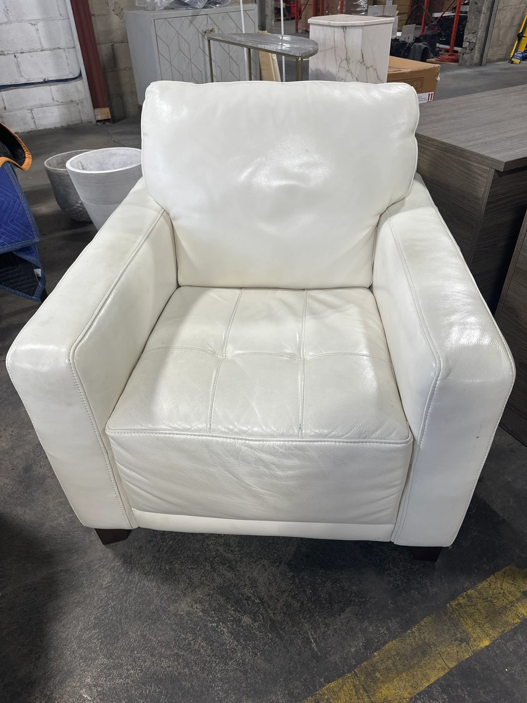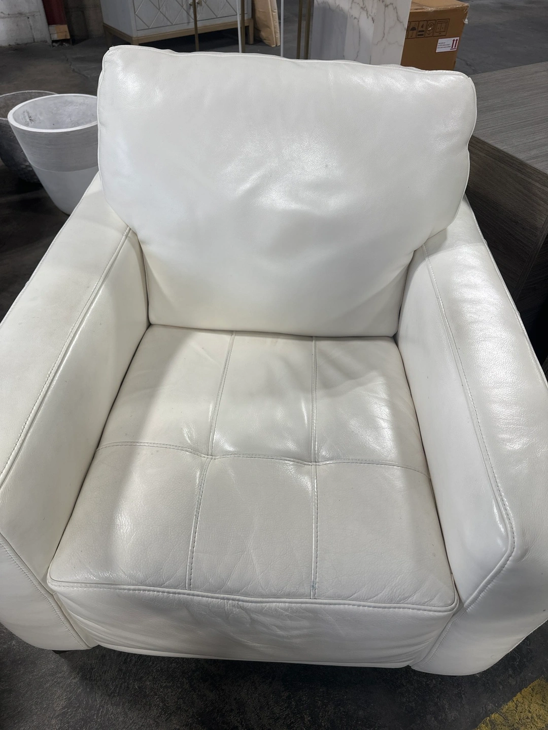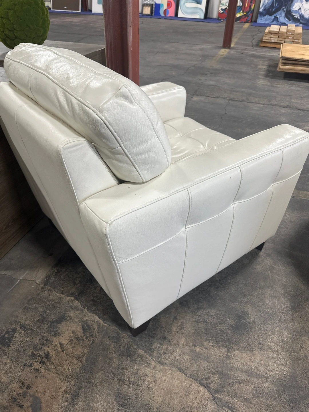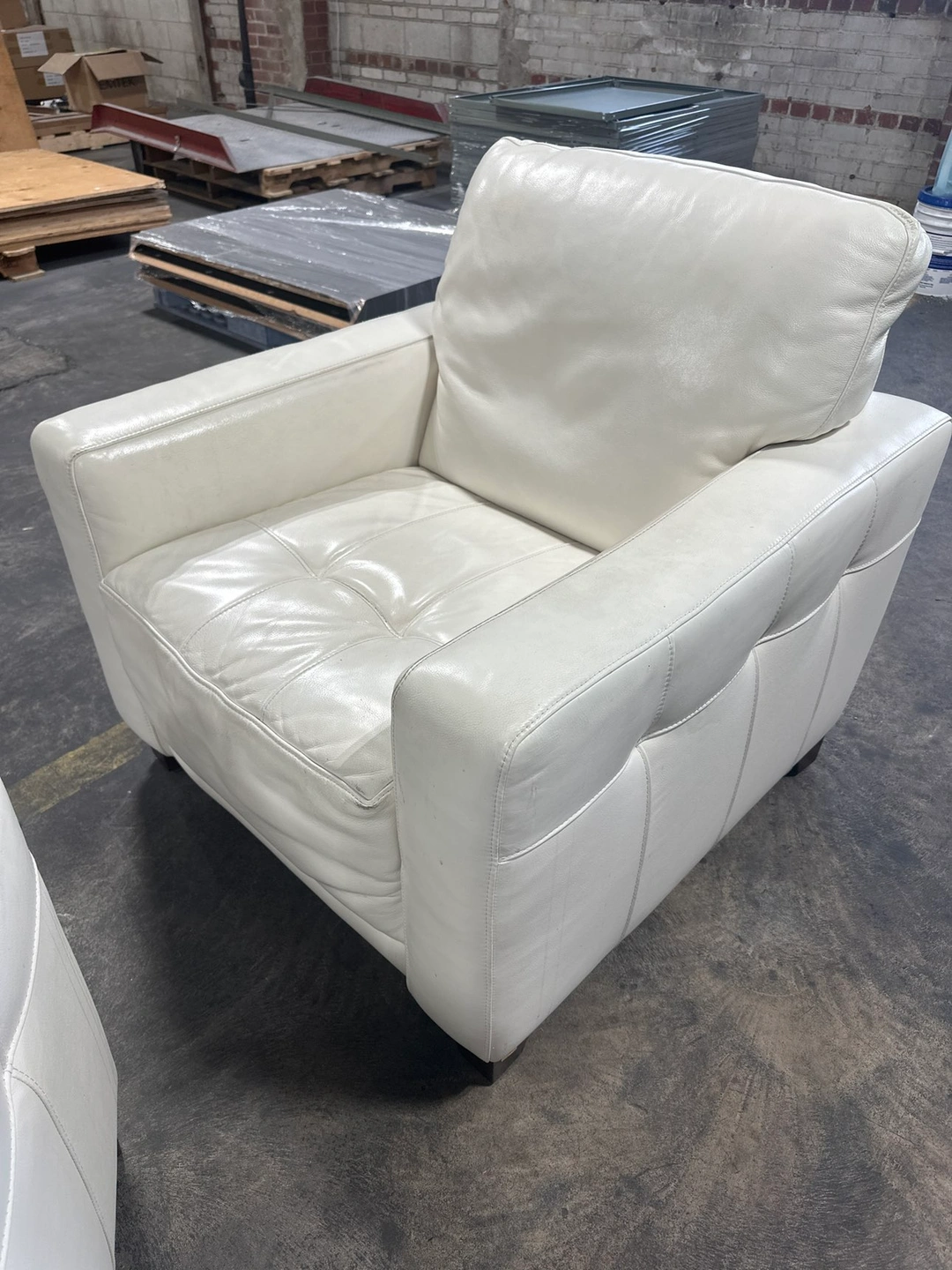 2 white leather chairs