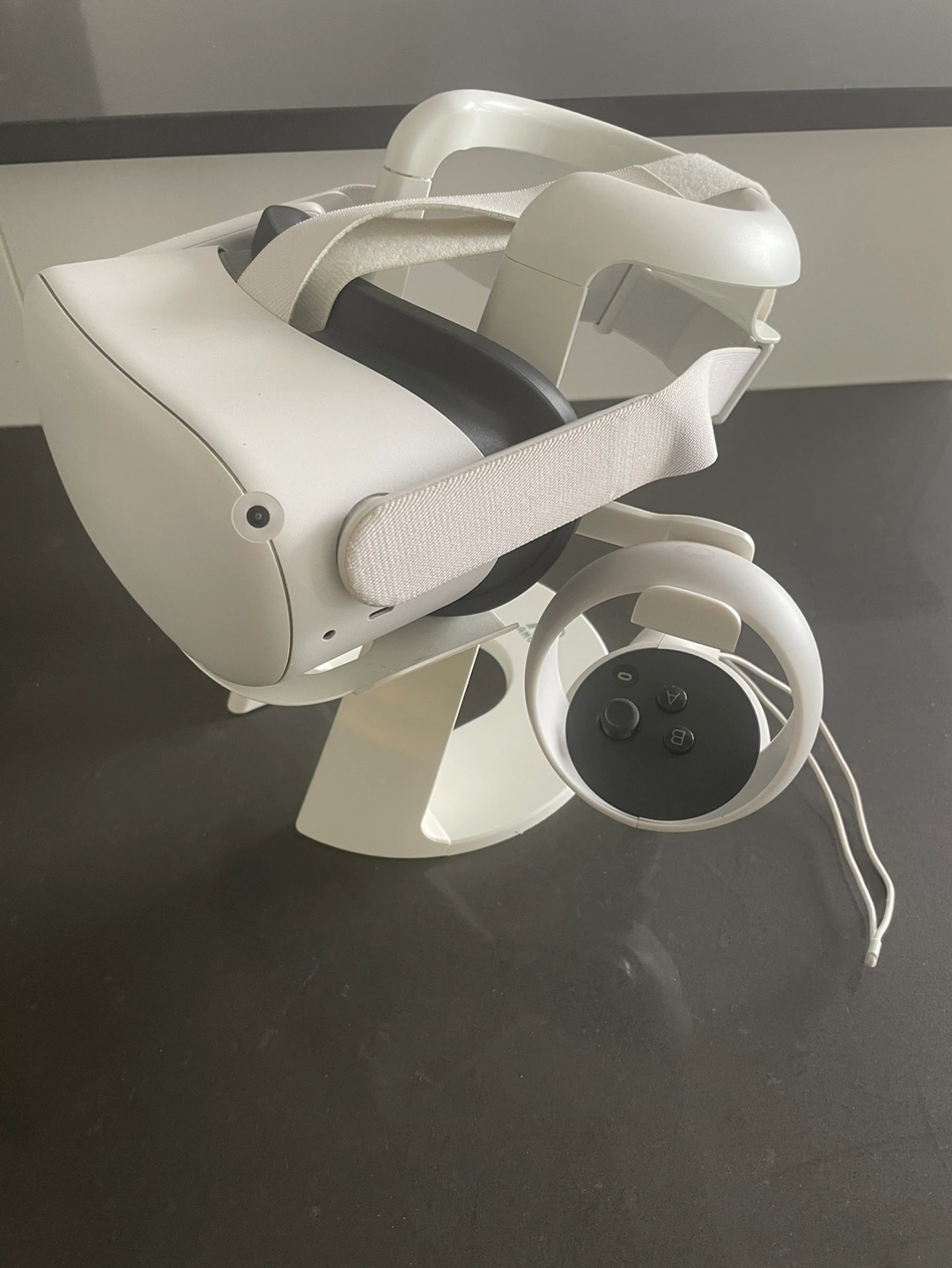 It is a Virtual Reality (“VR”) device that gives users an immersive 360-degree view of a three-dimensional virtual reality world. The stand is $50, it will be included with purchase for no extra cost.