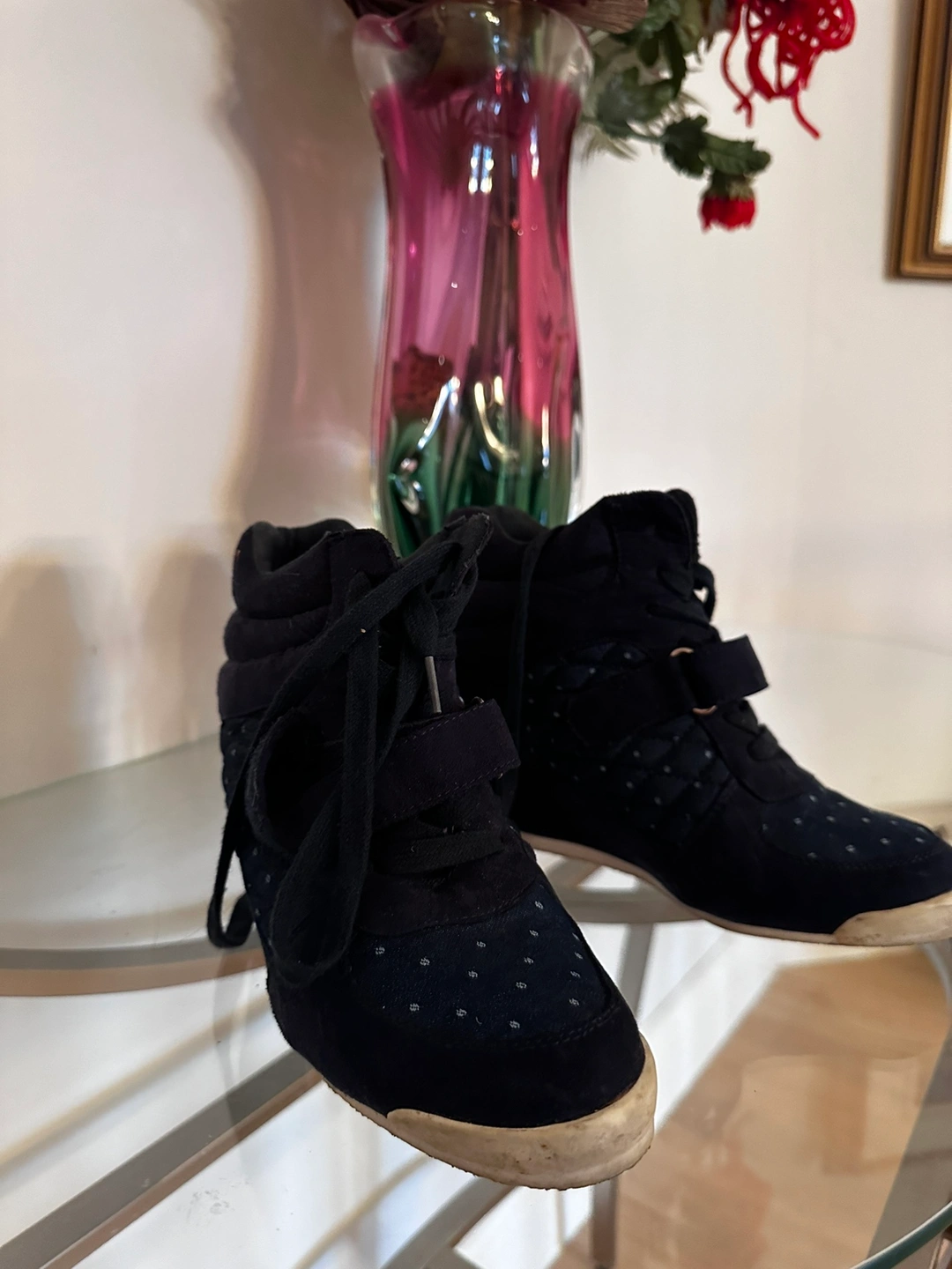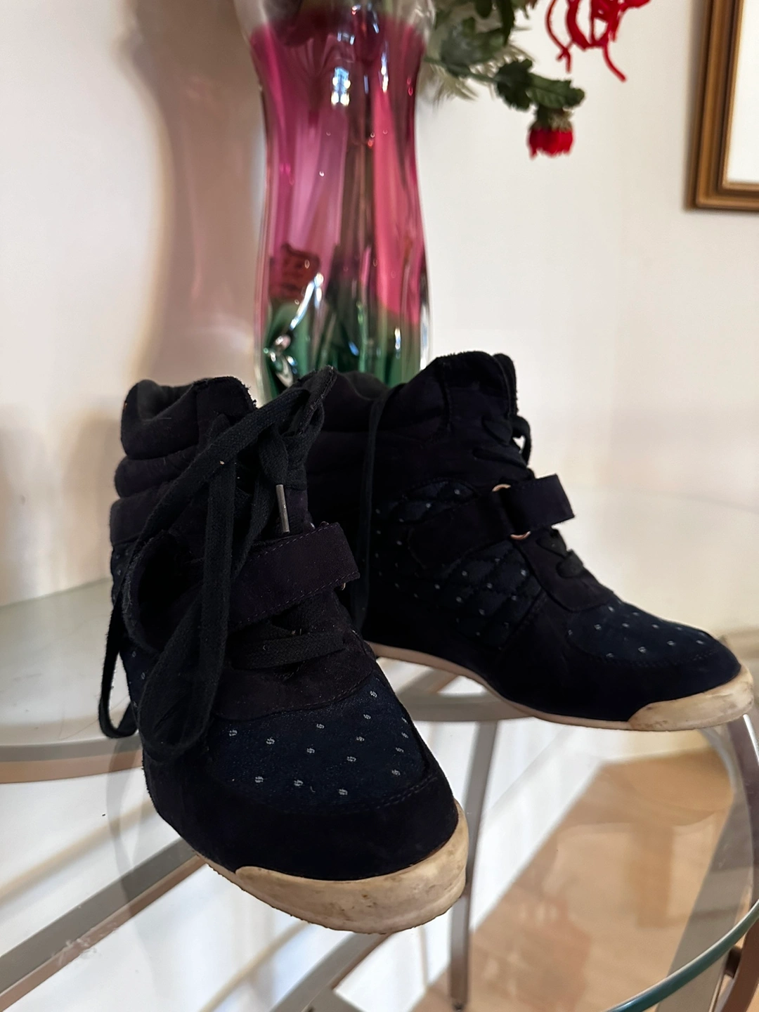 sneakers: These trendy built-in platform sneakers in a chic blue navy hue are the perfect blend of style and comfort. They'll elevate your look while providing all-day comfort, making them ideal for everyday wear. Barely-There Wear In excellent condition, having only been worn a couple of times, these sneakers are practically new. Move in Style Selling due to moving and needing to downsize my wardrobe. Check out my profile for more great finds! Feel free to ask any questions you may have about these stylish sneakers.
