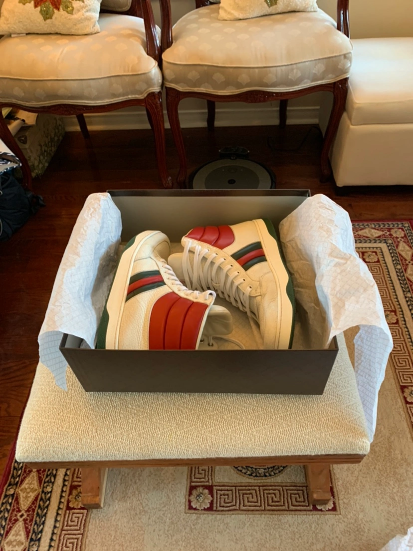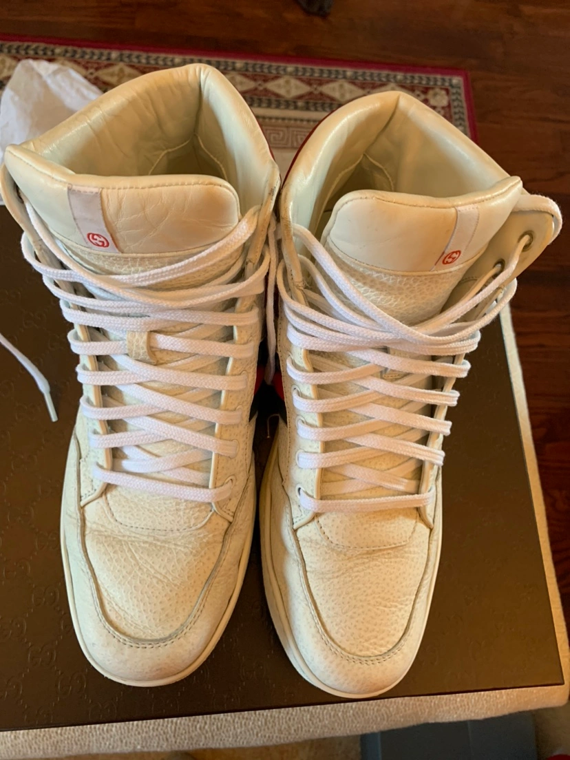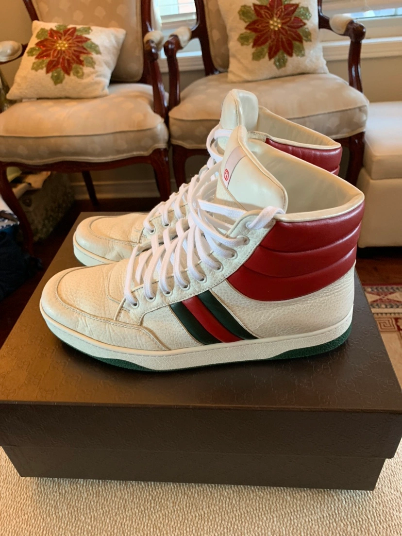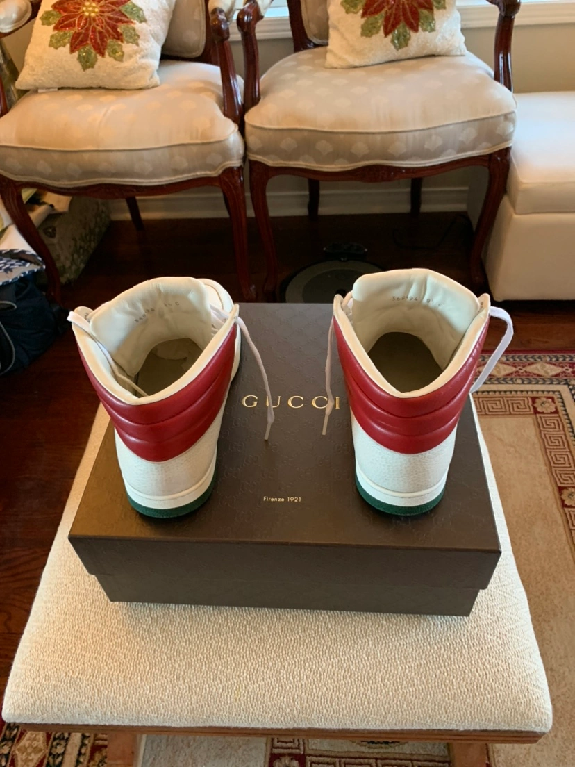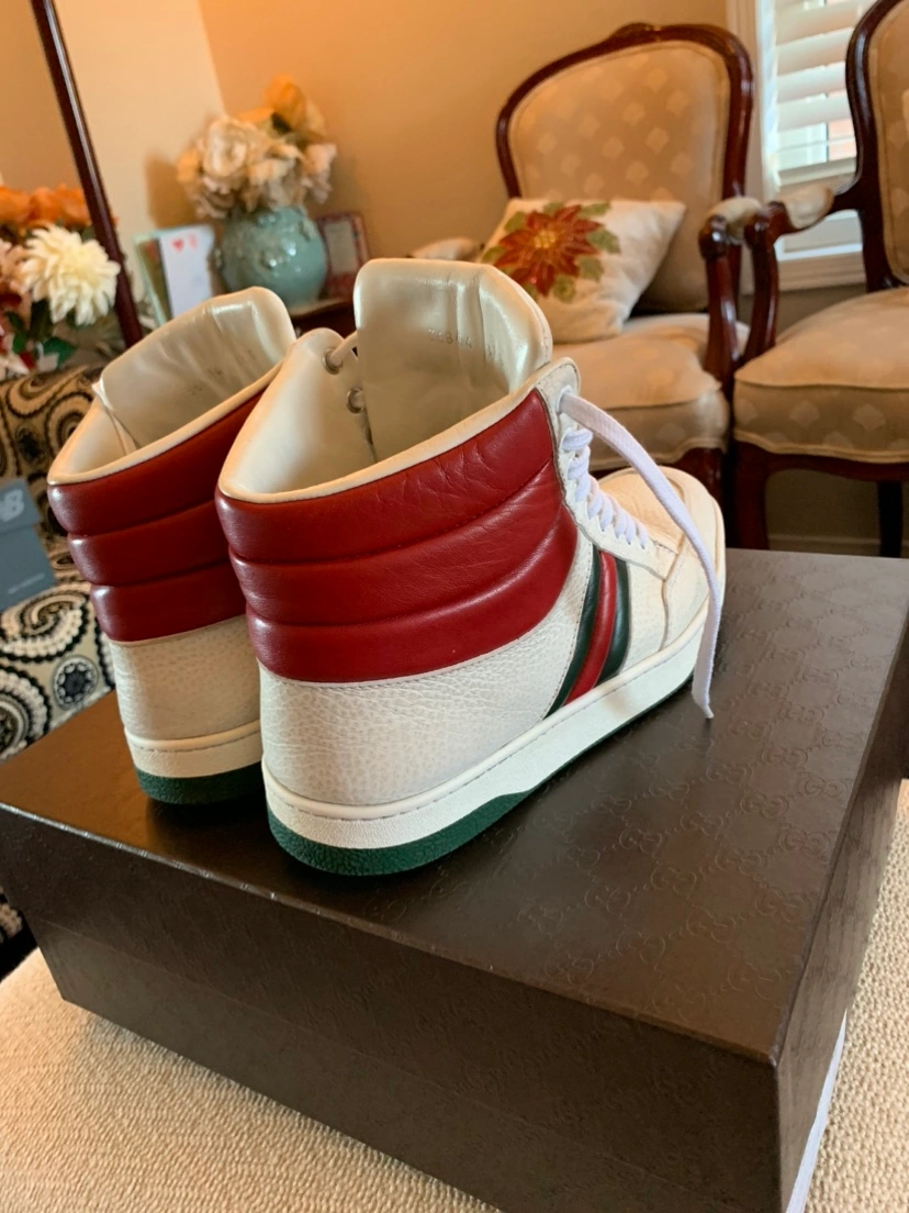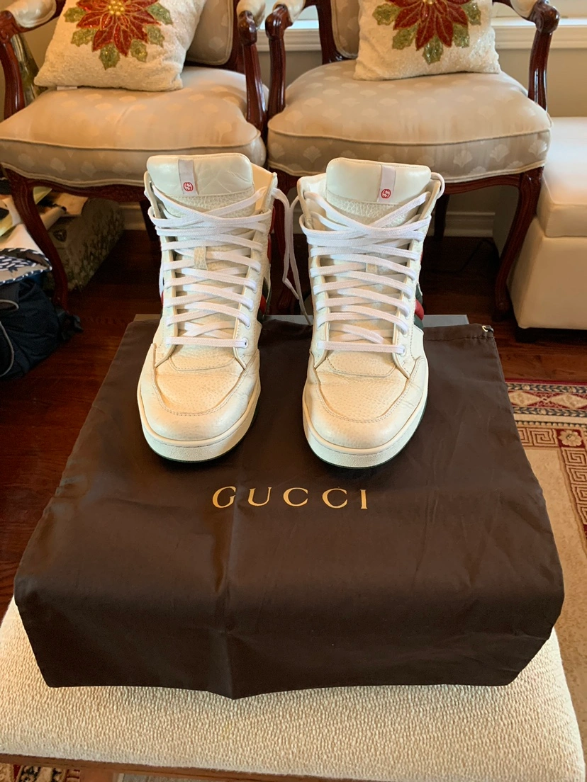 45Pre-Owned Gucci(Authentic) Sneakers. Size 8.5, Fits size 8 as well as Size 9. Very Clean And Fashionable Shoes. Originally Over $1200. Comes With Original Box And Dust Bag.Serious Buyers Only!