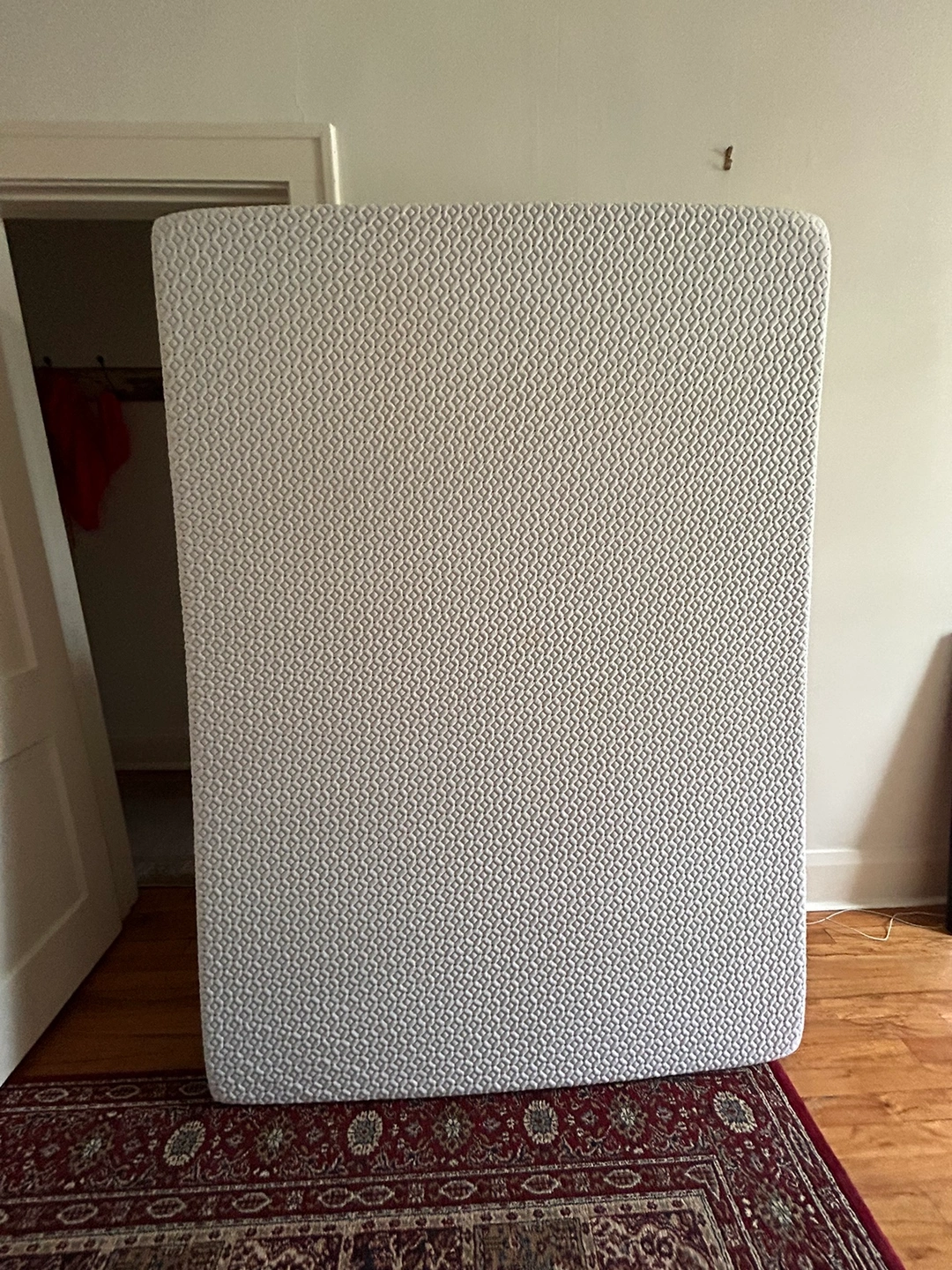 The mattress is medium-soft density and in good condition. It was purchased a couple of years ago but now I’m looking for something larger. Great for college students or anyone looking for a reliable, lightweight mattress!