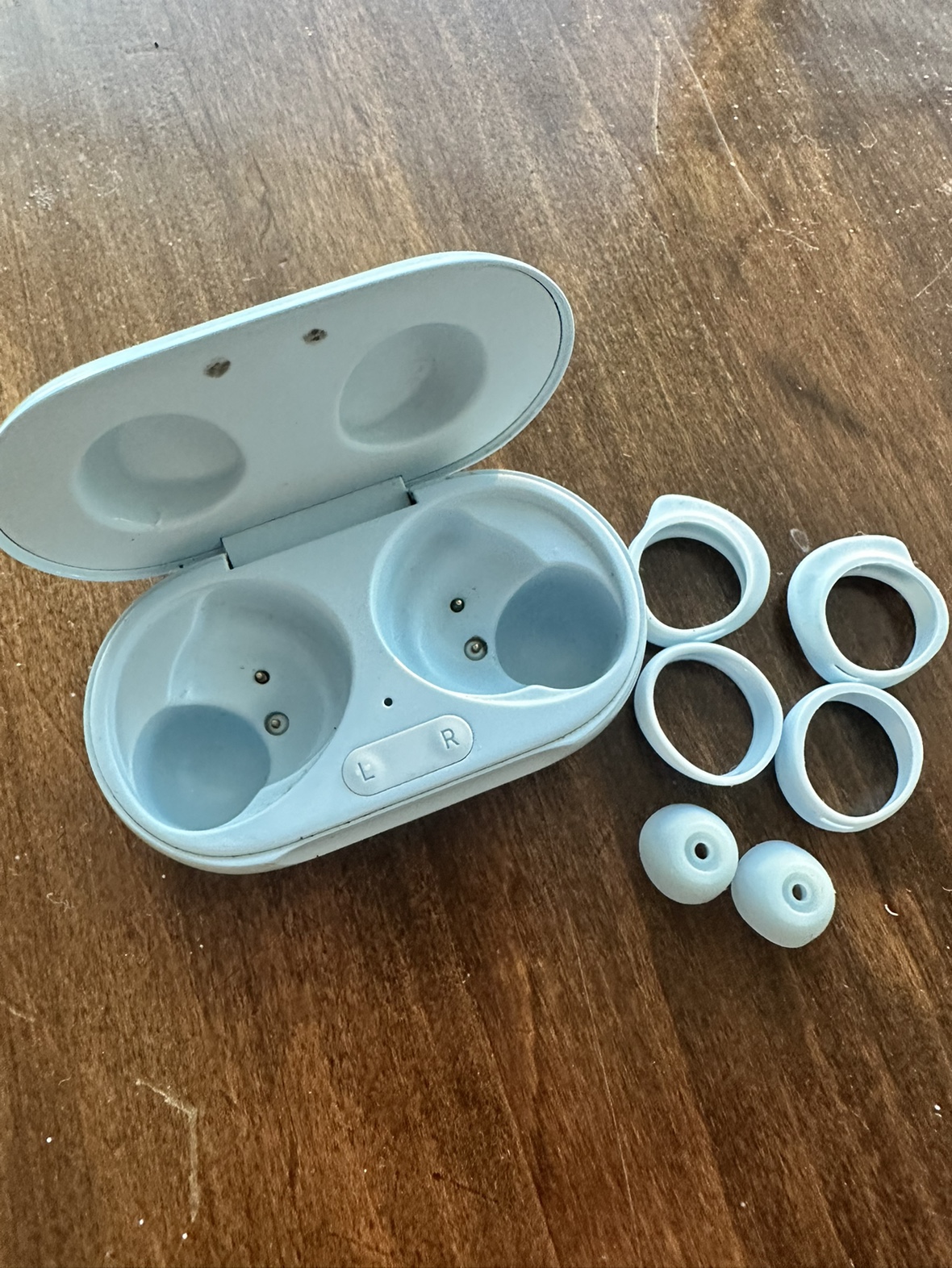 242Samsung ear buds case and customizable attachments. No ear buds come with it. Ideal for someone who lost their case. I lost my buds… 😓