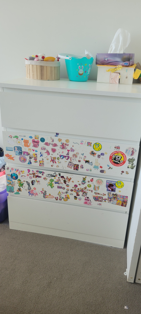 you can have a fun DIY project removing the stickers and restoring it.