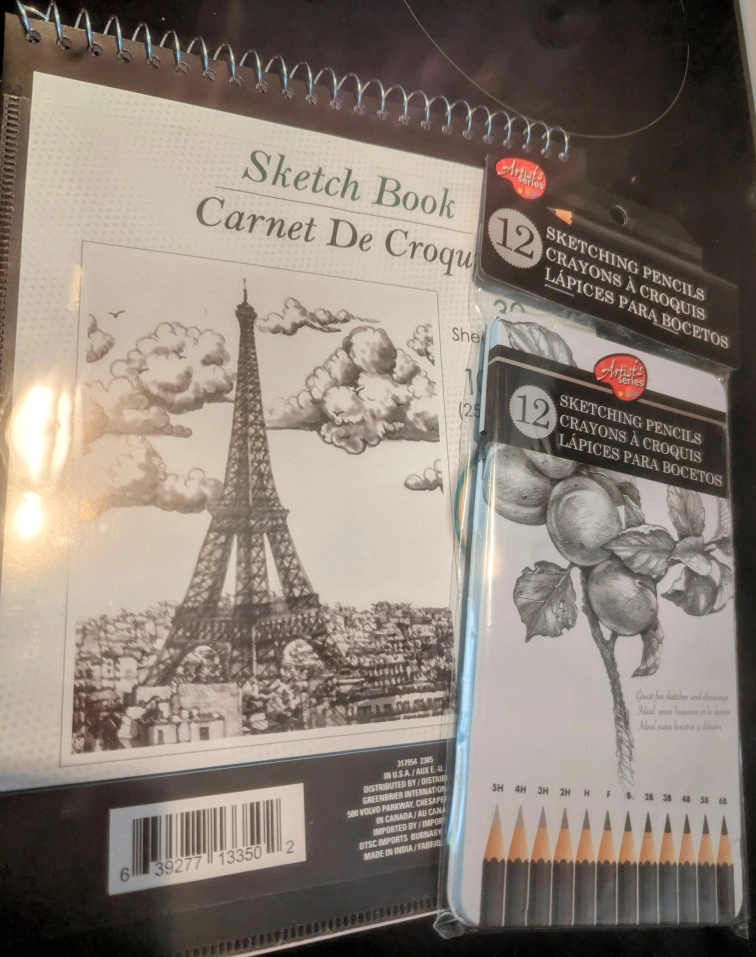 I am offering this for $10 rather than $20 or more because I was cleaning up the pantry and instead of expired canned goods I found these items. I already have a sketch book and pencils from Professionals. Actually I have two sets. I recall in art school, I paid over $18 plus tax for the same items I am listing. . It is difficult for starving Artisans? Any one who wants this?. Artists? Students? What to try your created side in sketching?
