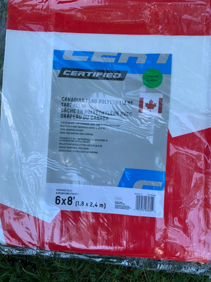 Canadian Flag ๐จ๐ฆ motif tarp ๐โพ๏ธ๐๏ธto use on your porch, cover furniture or trailer/cottage decor- protect your firewood ๐ชต agreeable mutual meet up-retails over $30.