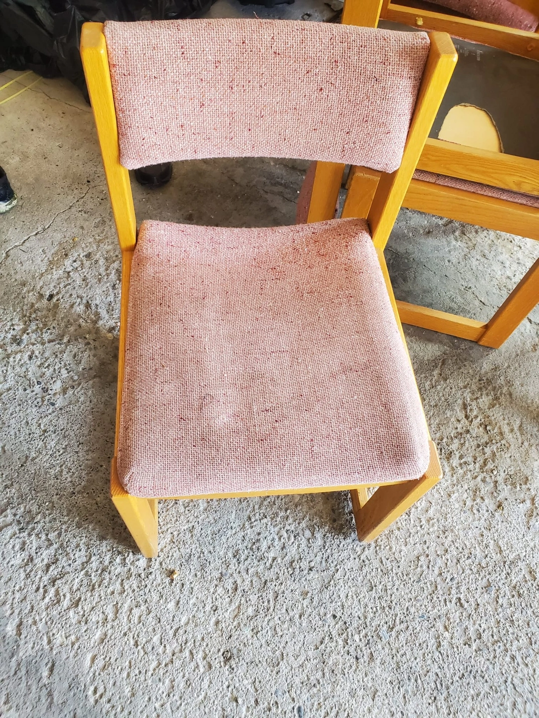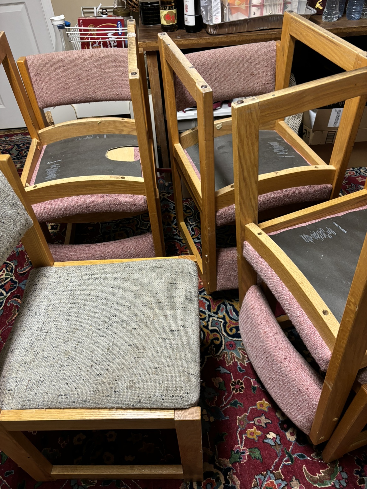 These fabric and wood chairs would work in many areas of a workplace or home.