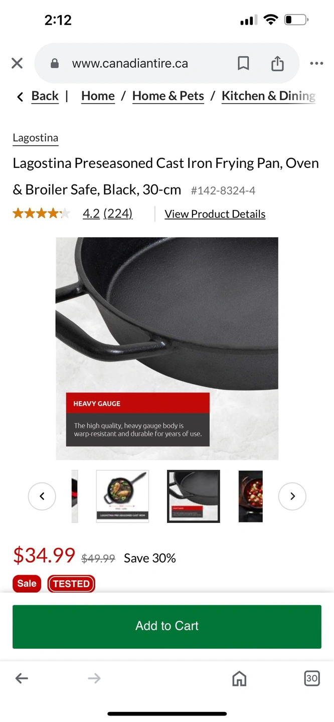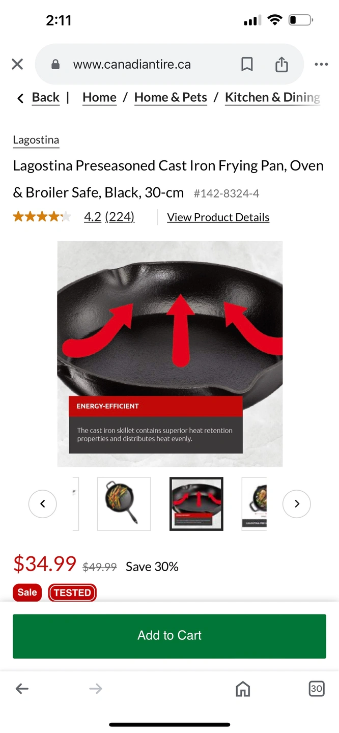 Lagostina black cast iron skillet comes ready to use straight out of the packaging and does not require seasoning. Designed to be energy-efficient, this cast iron cookware contains superior heat retention properties and distributes heat evenly, making it perfect for high temperature cooking. Its convenient high sides with dual pouring spouts help contain splattering. The cast iron skillet is equipped with a high quality, heavy gauge body that is warp-resistant and durable for years of use It is safe for all cooking surfaces, including induction and is also oven and broiler safe up to 400°F / 204°C. -HEAVY GAUGE