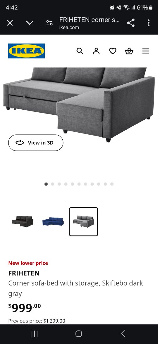 1 / 81 / 8Buy & SellIKEA FrihetenIKEA Friheten$349IKEA FRIHETEN Corner sofa-bed with storage Retails at $999 + tax Pet and smoke free home. great condition 9.5/10ConditionLike newWHERE TO MEETCheck LocationView MapSELLERverifiedStefanoBathurst Manor29427 reviews3 chats·4 favorites·55 viewsSEND CHAT TO SELLERHi Stefano! I’m interested in your listing.Hi Stefano! I’m interested in your listing.Get the Karrot app to chatSign In to chat