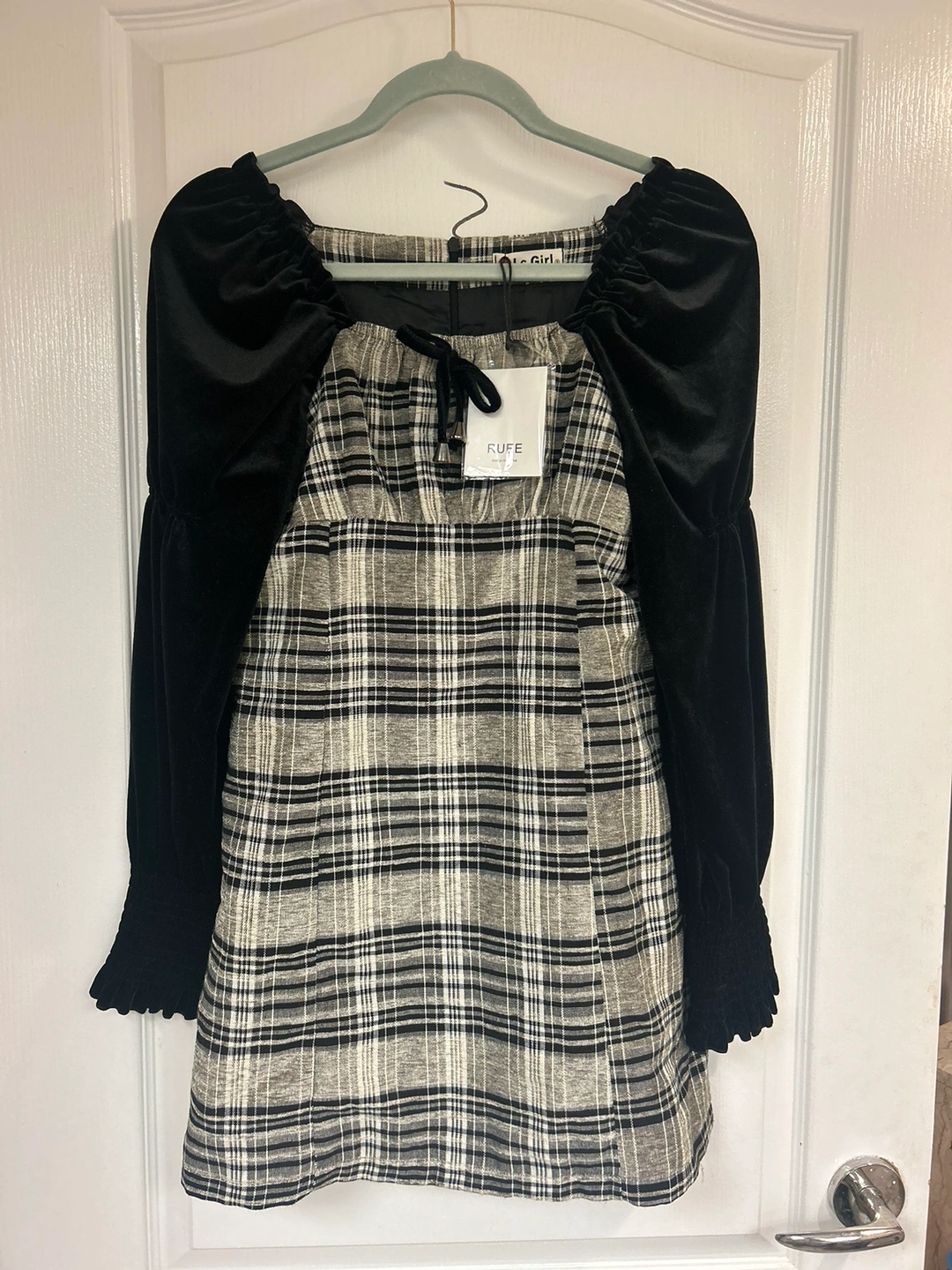 Selling this stylish plaid and velvet dress.