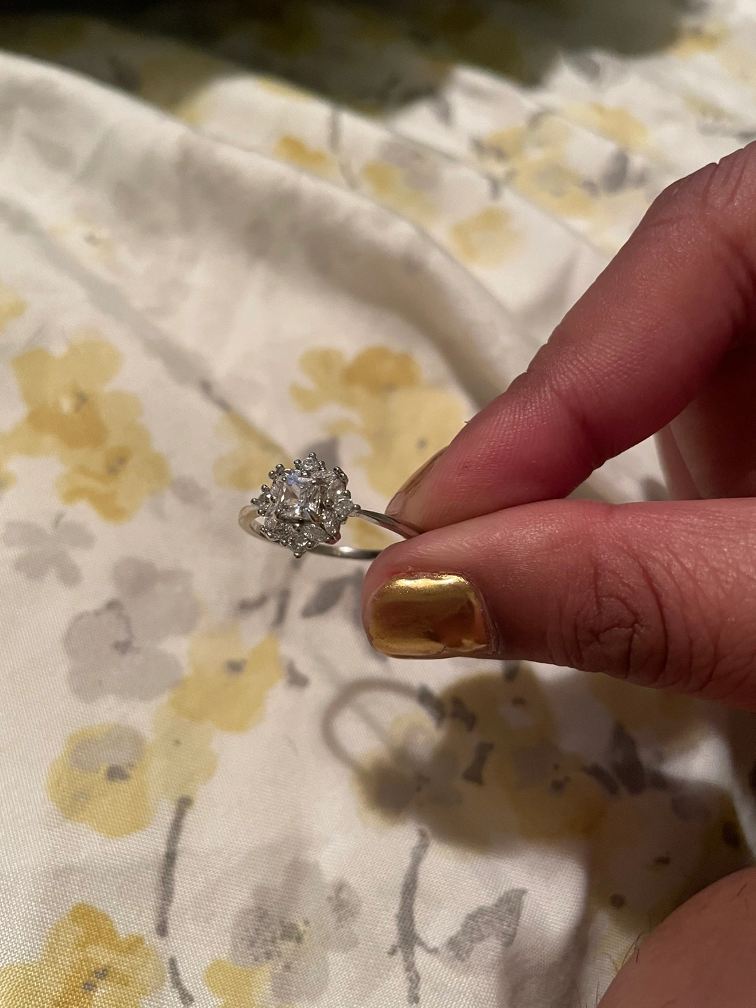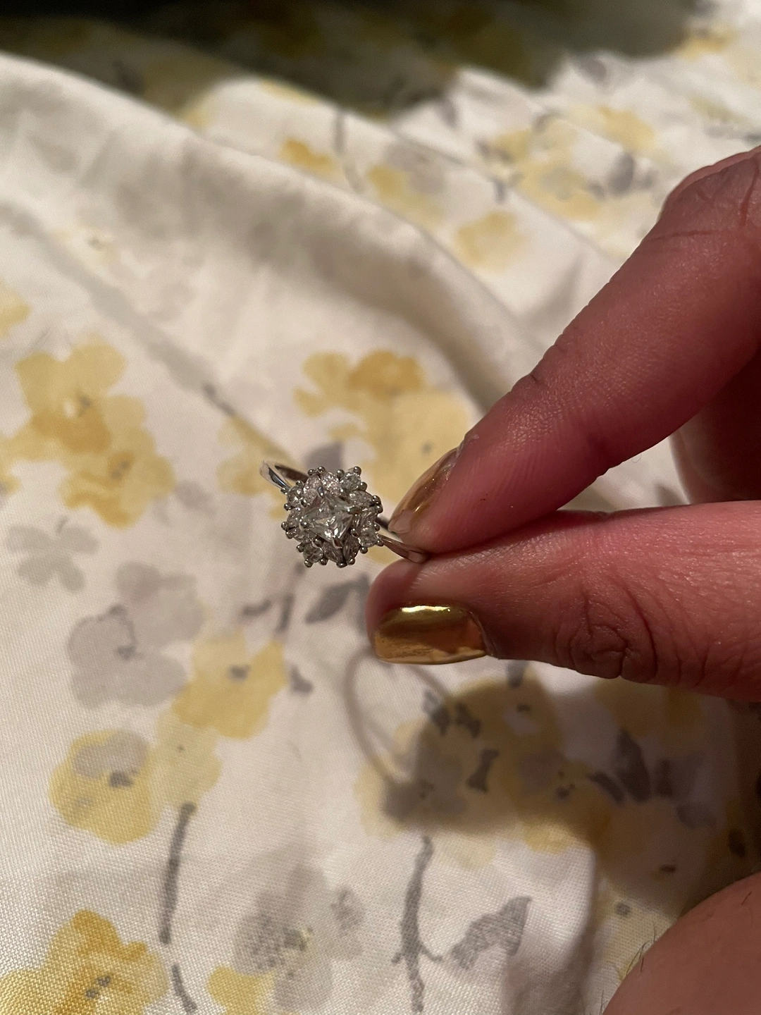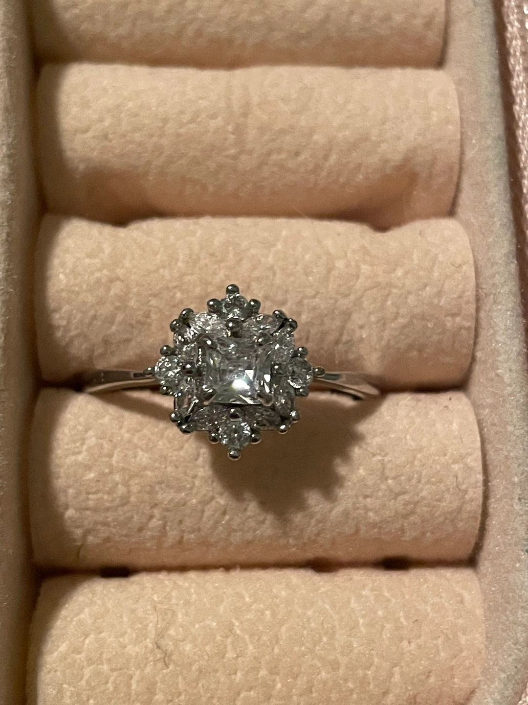 Silver snowflake style ring Size 8 Had for 2 years, never wore it much because it wasn’t really my style I believe it’s stainless steel and cz diamonds! In almost perfect condition, has no tarnish or major damages