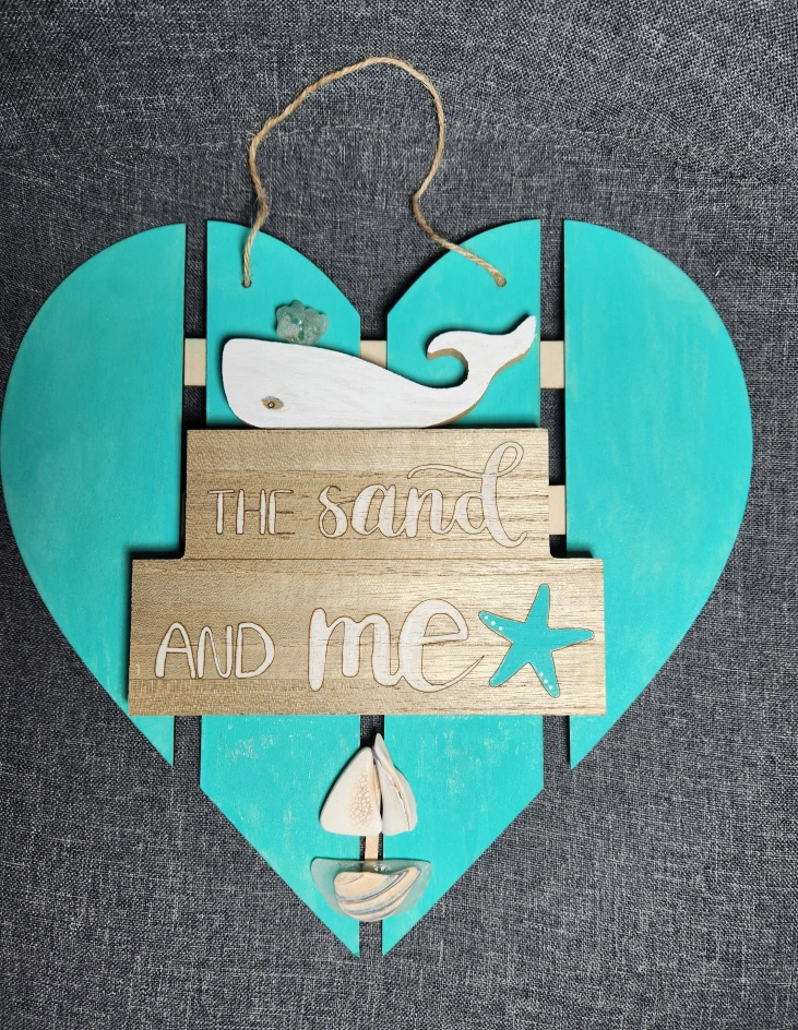 The heart was painted in Acrylic Teal pearl color, the sailboat is made of authentic sea glass & sea pottery crafted with love and unique little details.