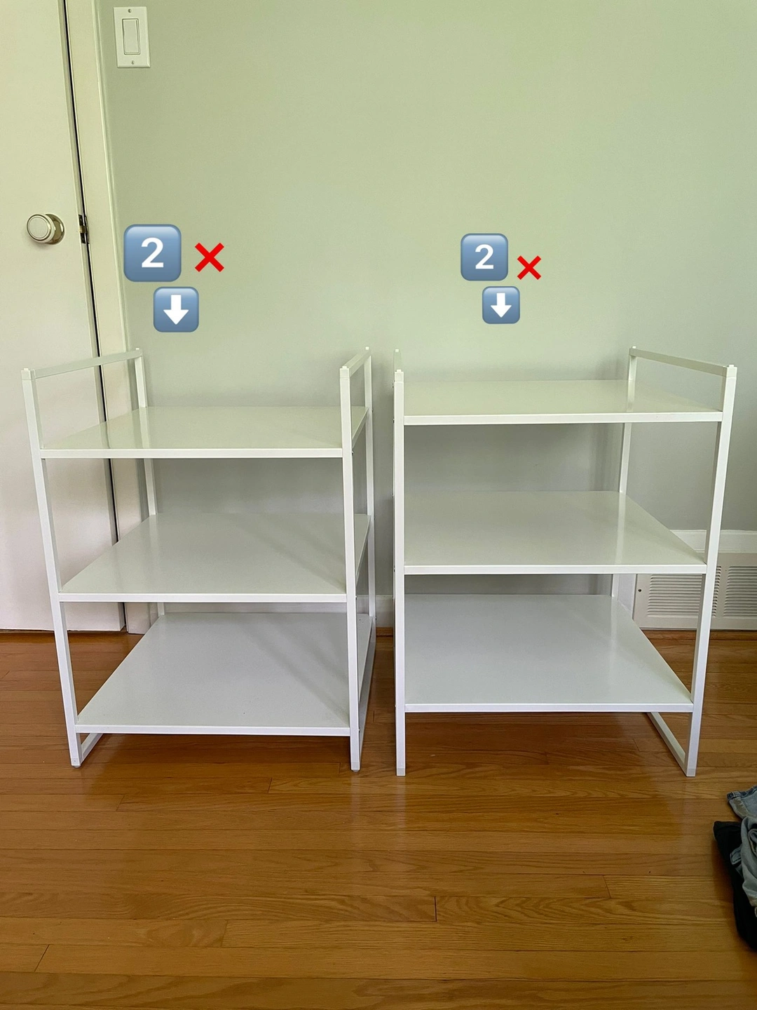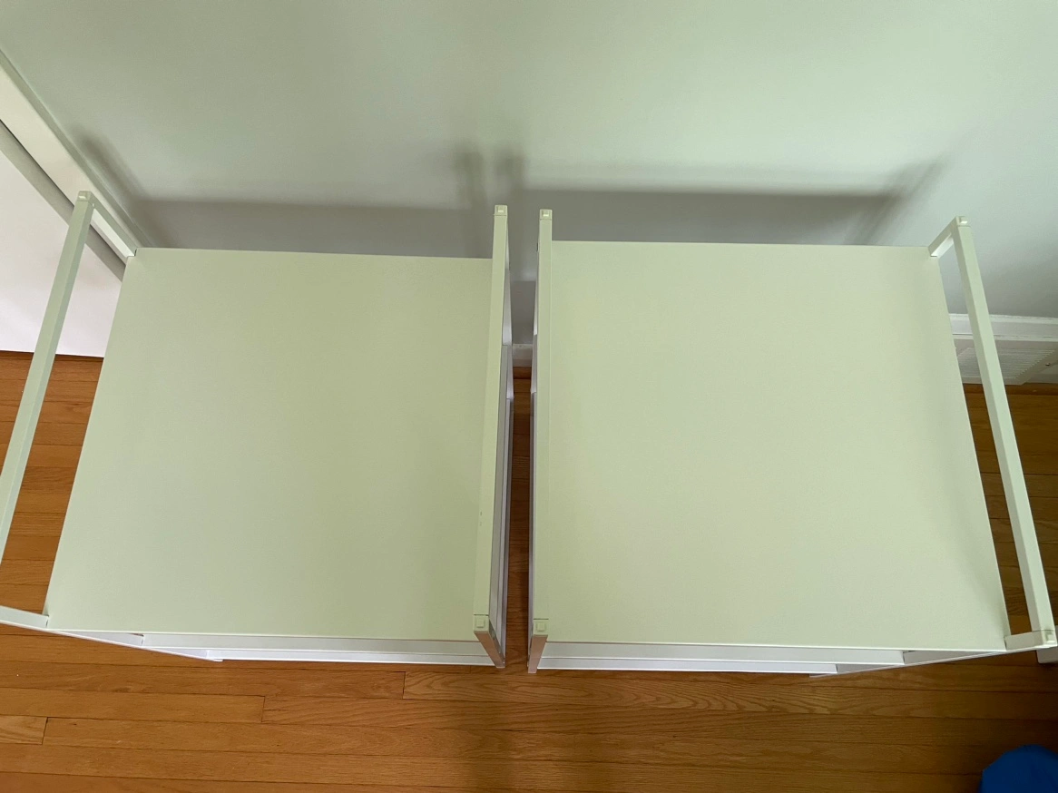 Like brand new. As you can see, there are stackable. We used it in our closet.