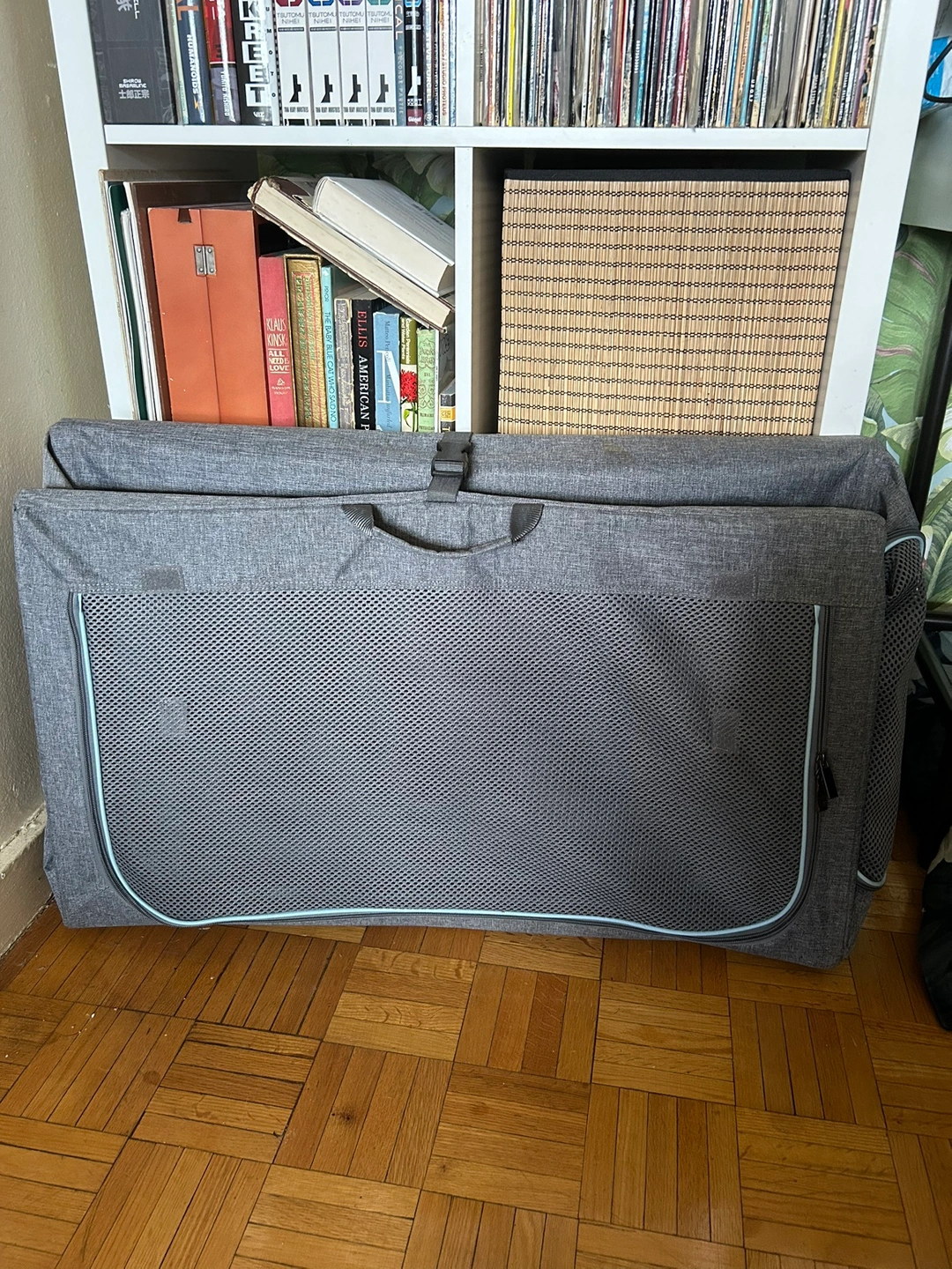 Good condition foldable pet crate. 30 x 20 x 19 Inches lightly used. Washable mat inside.