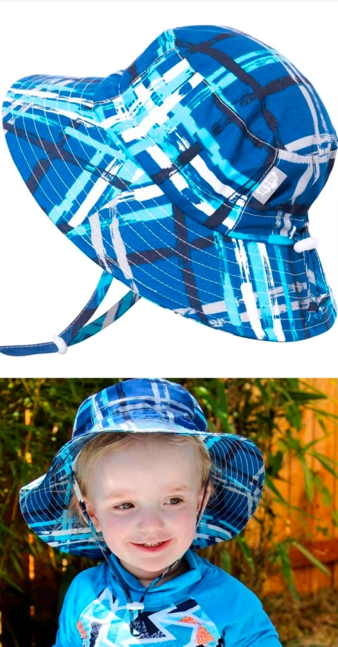 UV SUN PROTECTION & QUICK DRY: Made with 50+UPF aqua-dry water-repellent fabric, this sun hat for kids offers all day UV protection and comfort; perfect for beach and pool water-play. UV rating is due to weave of the fabric, no harmful chemicals or dyes were used. The brim stays up well wet or dry.