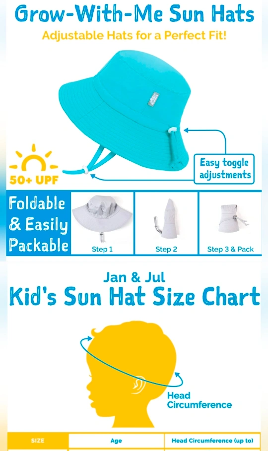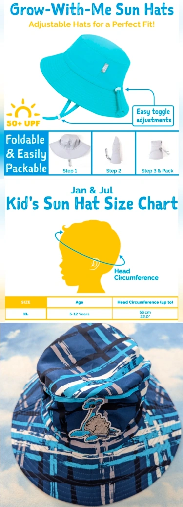 GROW-WITH-ME SMART DESIGN: Baby, toddler and kids' sun hat with fully adjustable head drawstring. Allows you to size up so you can use the same sun hat for your child for multiple seasons.