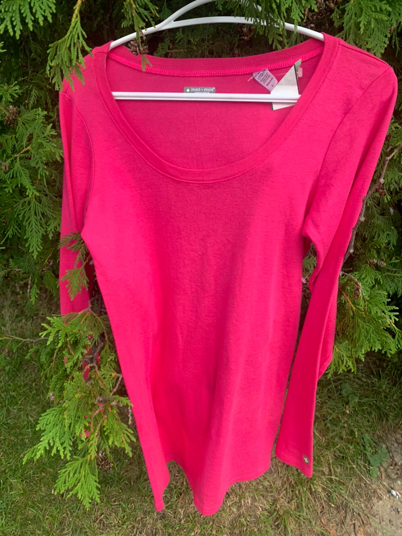 1000+NEW insect shield, long sleeve top, which protects you from mosquitoes, ticks and other insects $32.+🇺🇸💵scoop neck in gorgeous pink-great for the outdoors, camping, sports-mutual agreeable pick up arranged