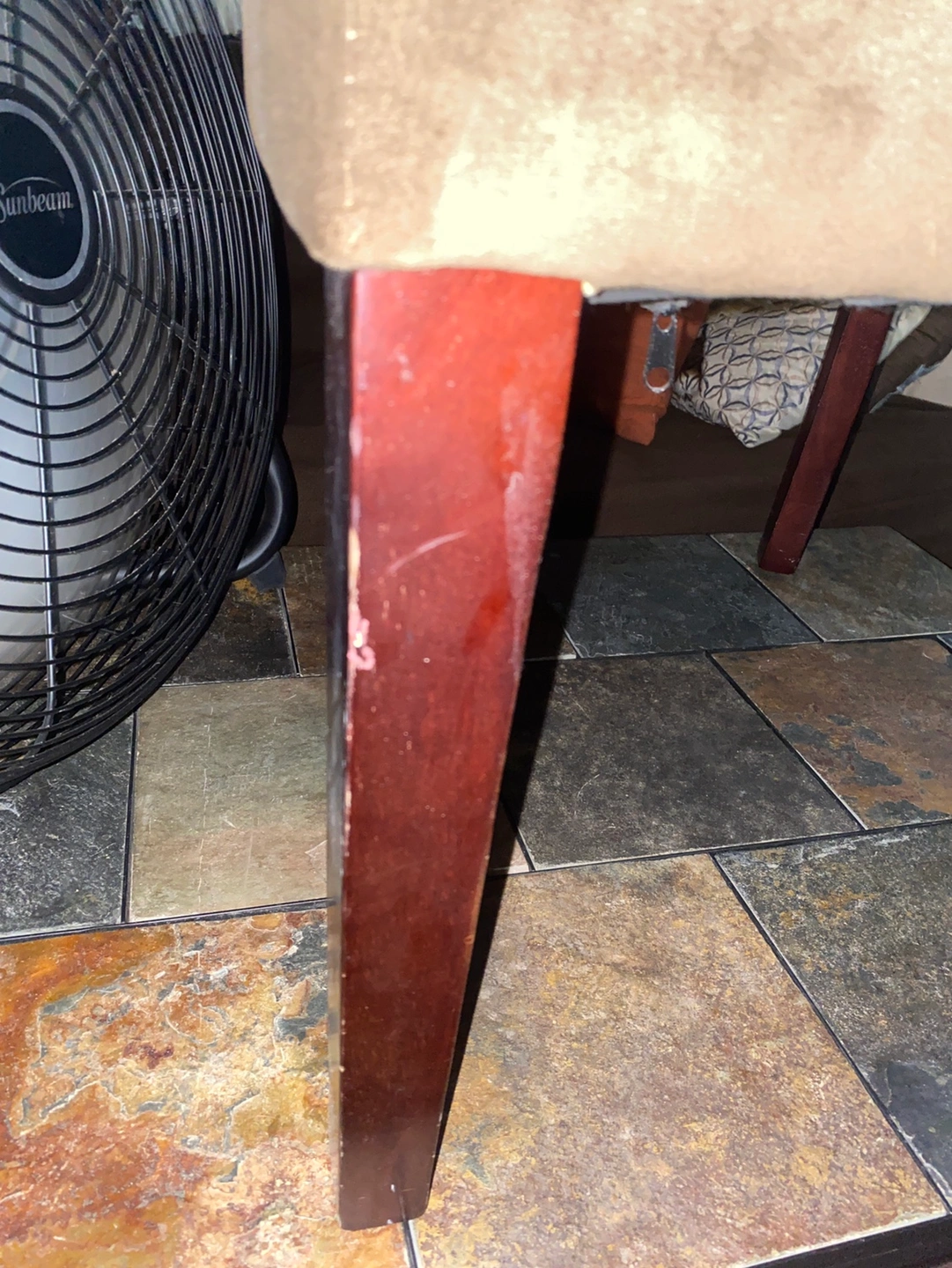 If you scruff marks on the legs price reflects that other than that the chairs in good shape