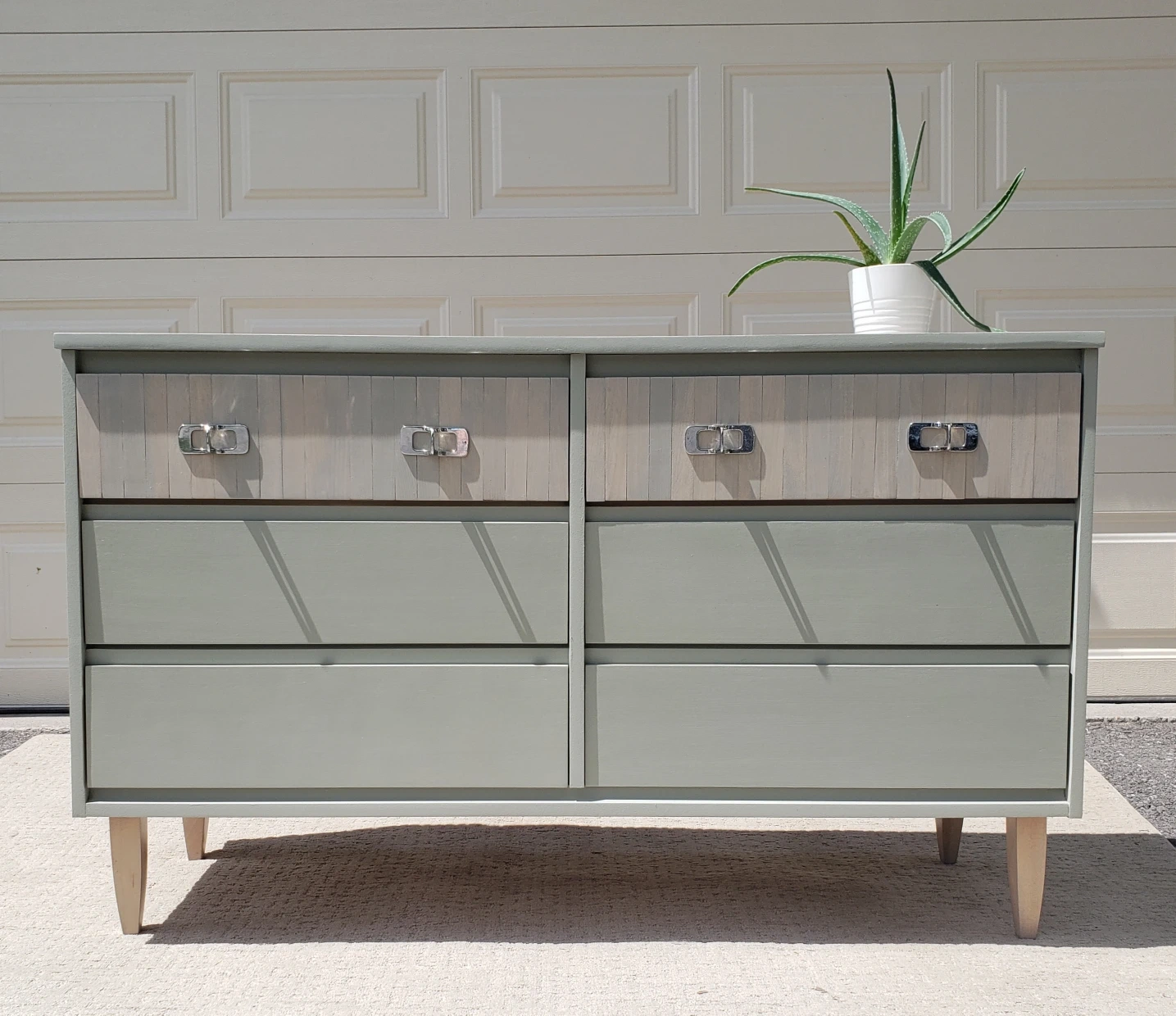 Beautiful six drawer dresser finished in the colour of Fusion Eucalyptus and Sun Bleach stain.