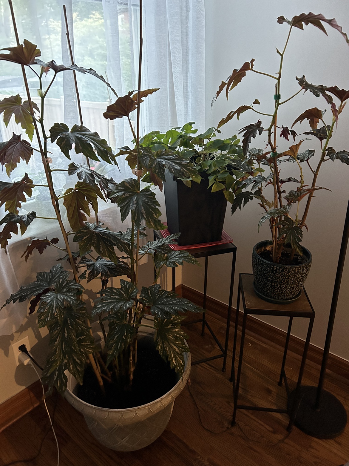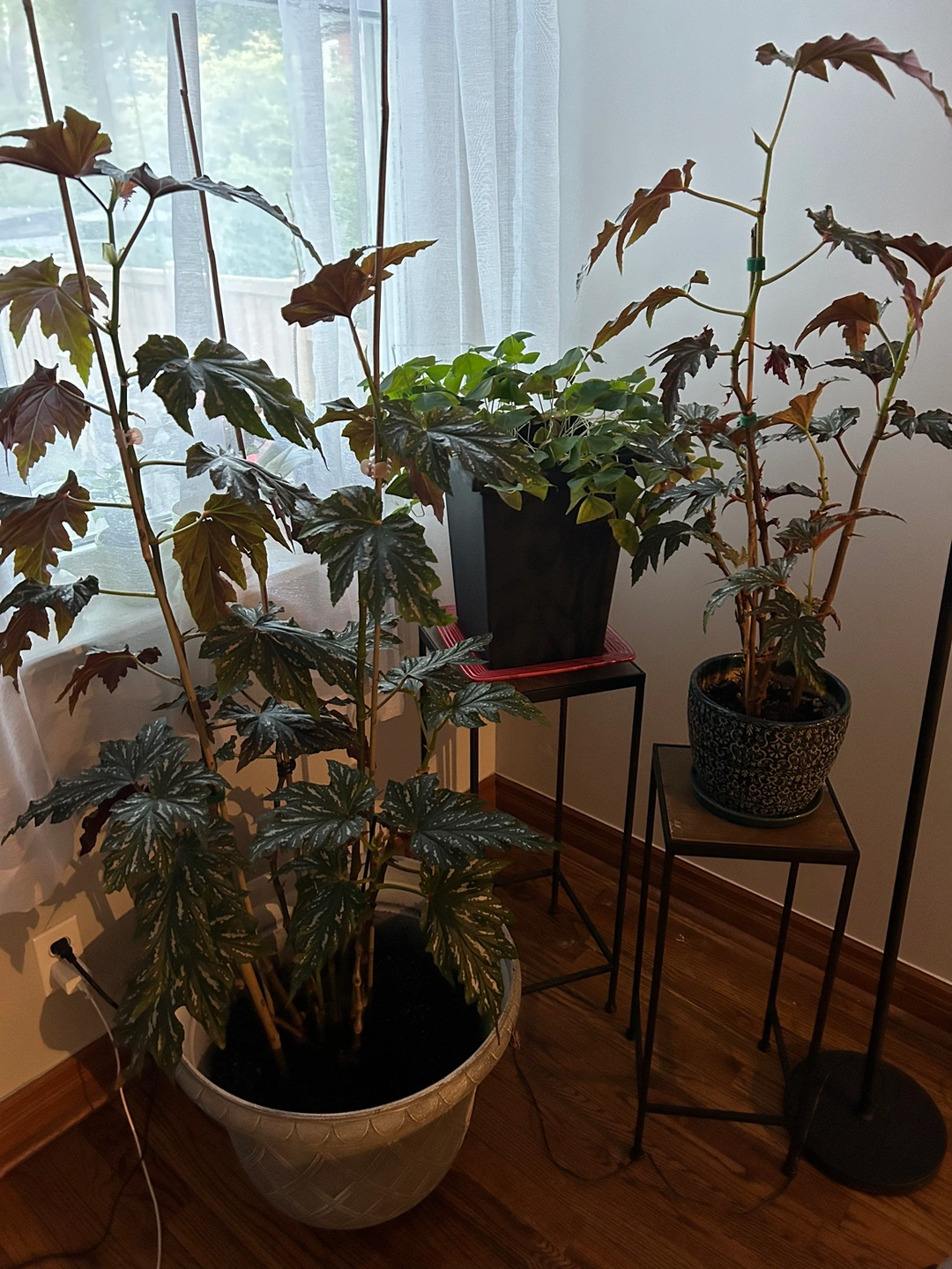 Moving and selling all our plants - begonias, purple clover, and we have several other larger pots of spider plant, rubber tree plants, etc.