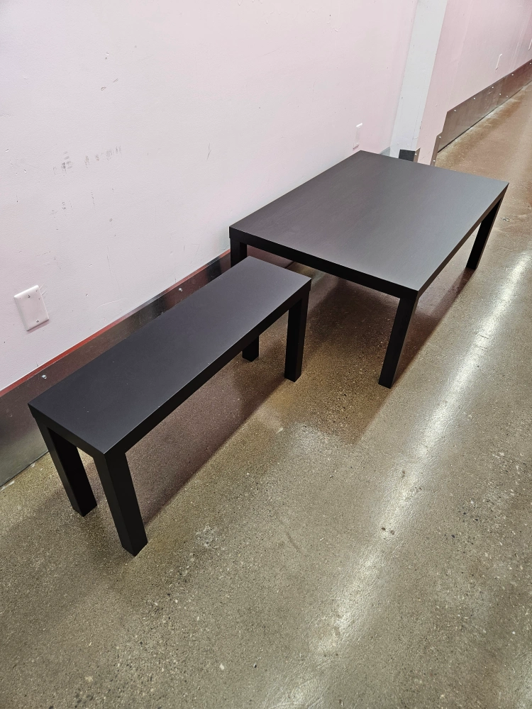 Ikea coffee table and TV bench Both in great condition. Coffee table dimensions: 46.5" × 30.5" × 18" tall TV bench dimensions: 35.5" × 10" × 18" tall Selling both for $40 total, or best offer. Will accept cash or etransfer only. Location for pickup is 355 Weston Rd. Willing to deliver if paying the full asking price and within a 15 minute driving radius.