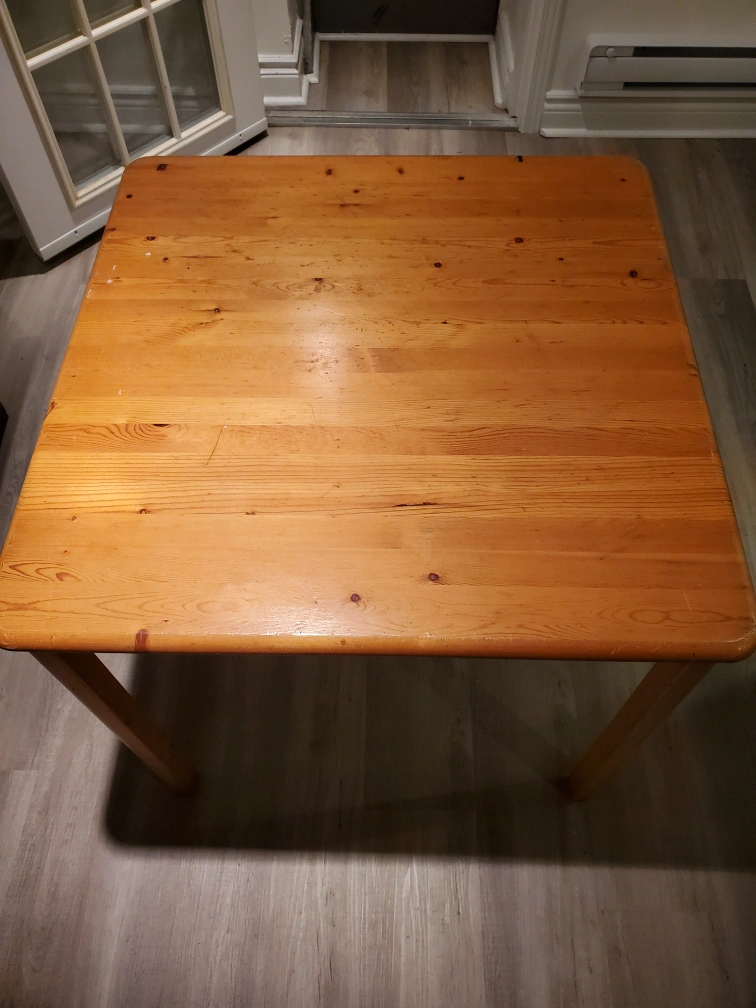 Can you use an old Ikea table? Used condition with scratches and some paint splatters. See pictures for detail. Porch pick up.