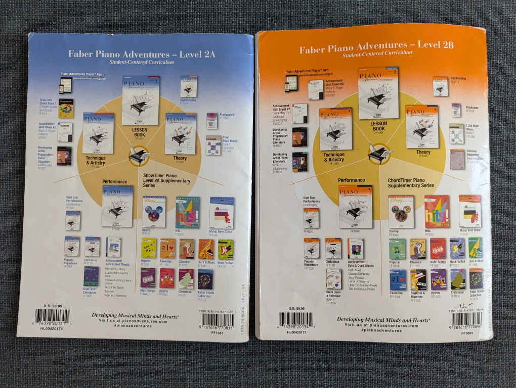 371Piano Books- Piano Adventures 2A + 2B Lesson Books by Faber. Both in good used condition, some color markers and some pencil. Can be used continuously. Certificates on the last pages are still new. Priced accordingly for bundle only. Was over $12+ tax each. Pickup North York Centre, cash only.