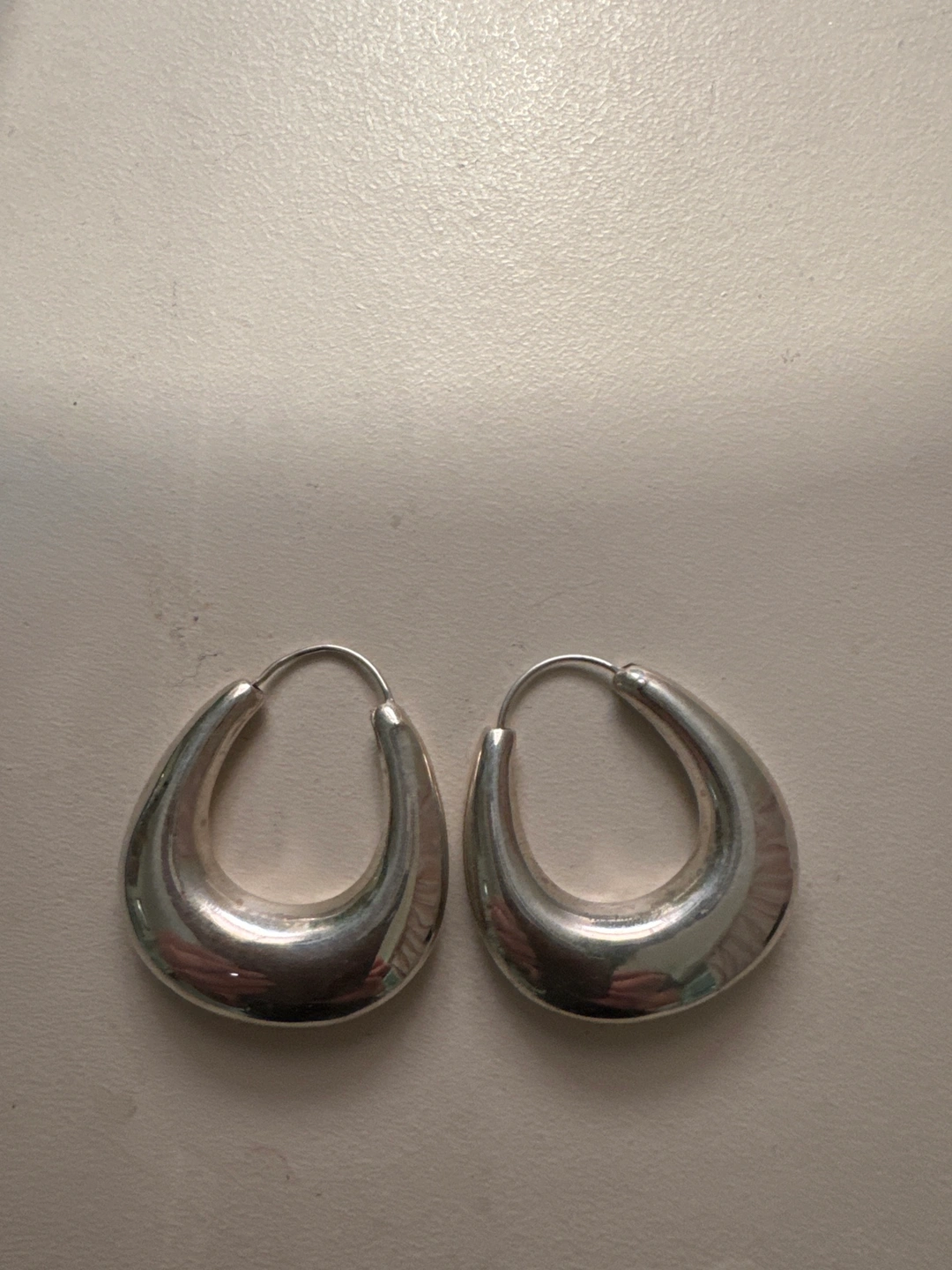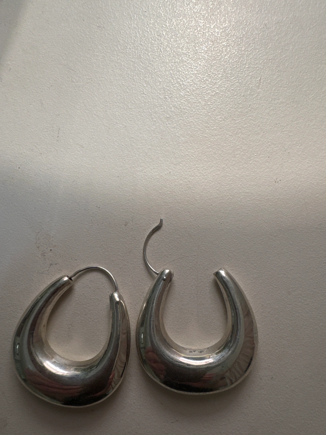 A lovely pair of silver hoops…. Measuring 3.5 cm across at widest point. Hollow. Strong clasp checked by jeweller prior to posting. Lovely gift for you or… someone else!