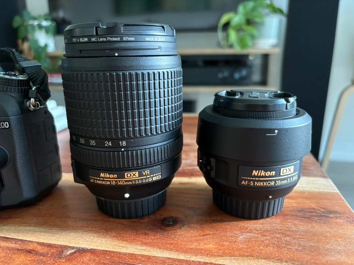 Selling my beautiful Nikon D7200 camera in perfect shape with the original Nikon battery. Selling with two lenses (18-140mm and 35mm), perfect for all occasions. Both lenses come with a lens protection filter. Also giving a rain cover to use in the rain. With the D7200 you get outstanding image quality and fast, precise autofocus – even in near darkness – in a rugged, weather-sealed body that will stand up to inclement weather. Great for a beginner or intermediate photographer! Shutter count only at 6035.