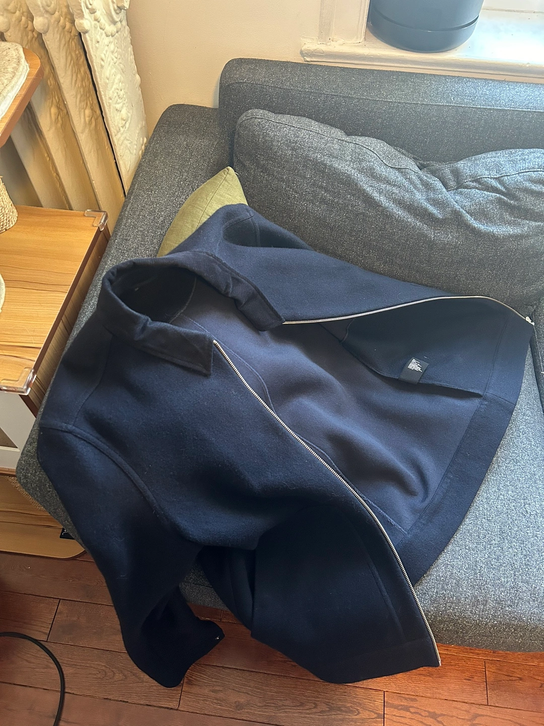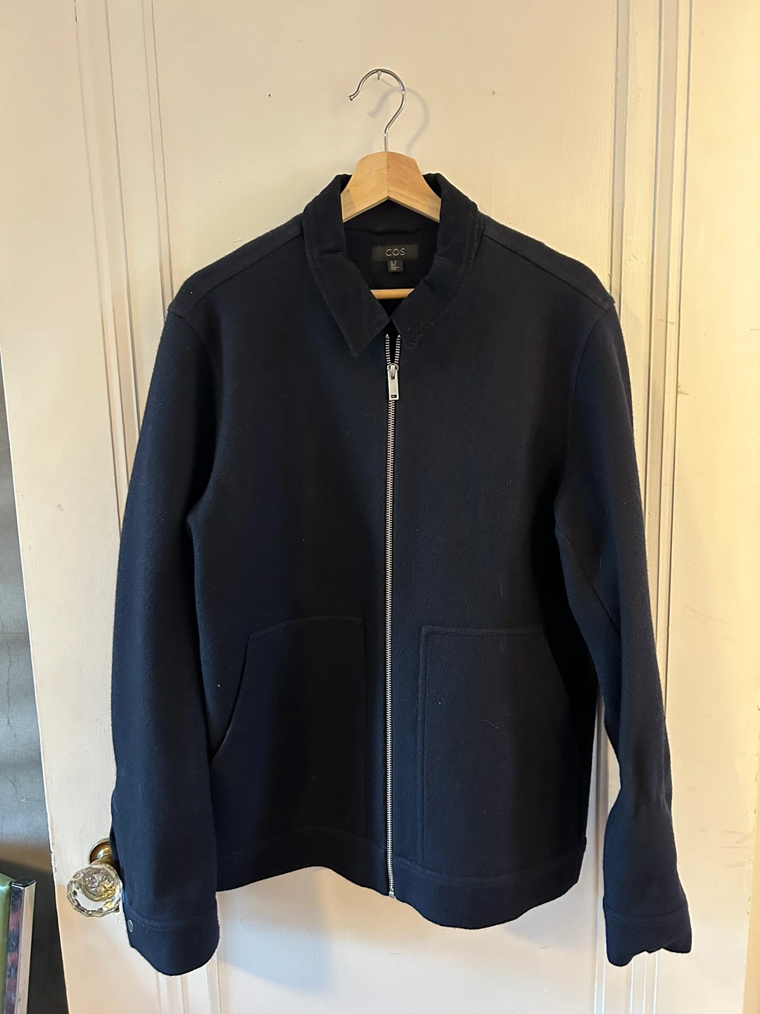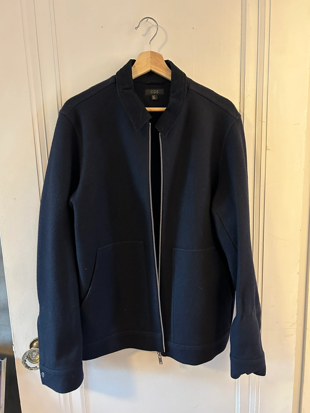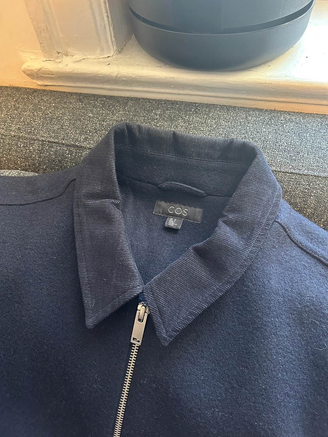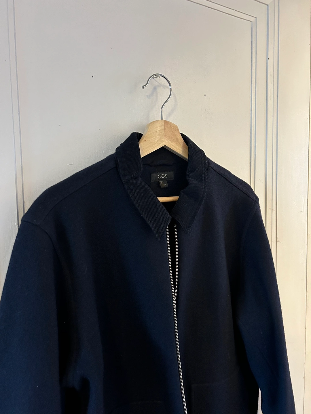 Beautiful structured navy men’s jacket from COS with corduroy collar, medium size