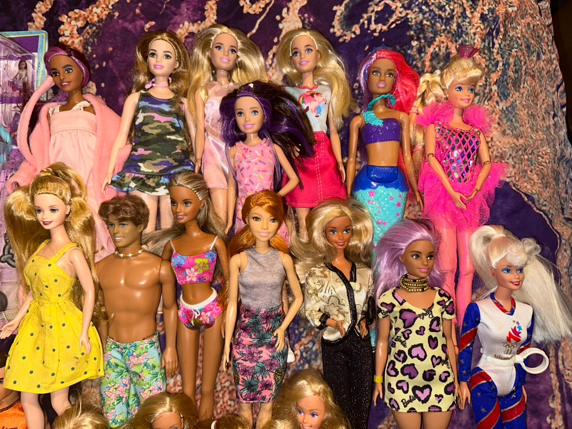 27 Loose Barbies there is a mermaid. There are some fashionistas, some curvy and some my scene Barbie’s there are also two Ken dolls giving a total of 30 Barbie dolls plus the baby selling as a bundle I am in need of space looking for a speedy sale. Asking $85 that’s less than $3.00 per item bin is included if you want it if not, I can pack everything in a large bag. Just let me know prior to pick up.