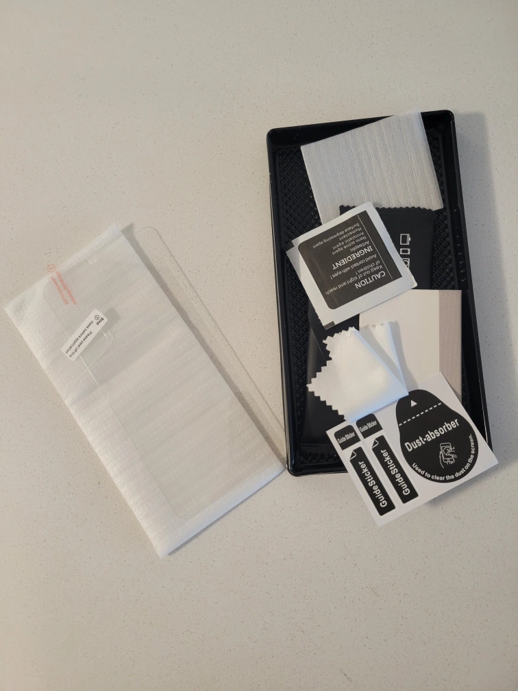 Tempered glass protector for screen & back camera for Samsung S21. Comes with all the tools to lay them on your phone (dust stickers, thing to smooth about bubbles, wipes, etc.)
