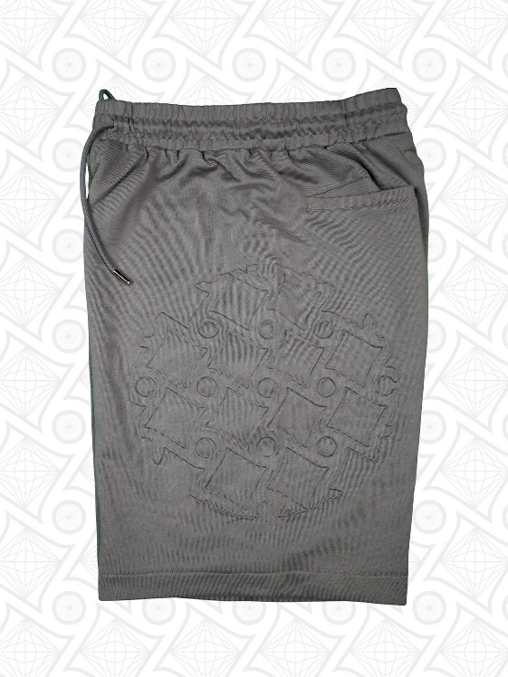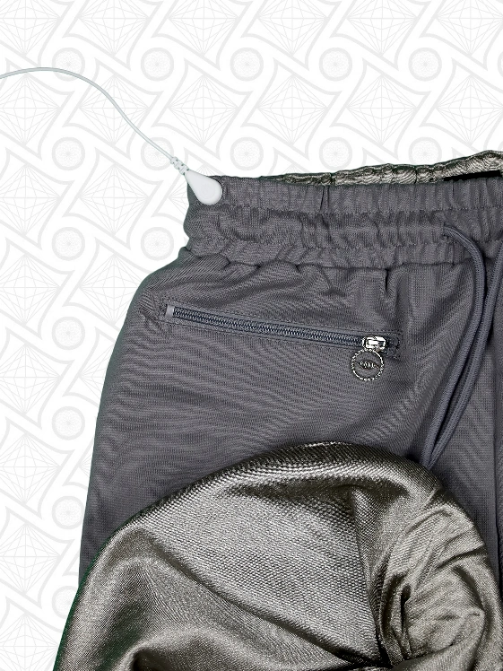 The front of our shorts is equipped with a faraday cage pocket that can be zip-shut with our custom tensor ring inspired zipper head, ensuring that you and others are protected from the EMRvemmiting from your phone and other electronic devices. The shorts have a relaxed fit that sits slightly above the knee, providing both comfort and style.