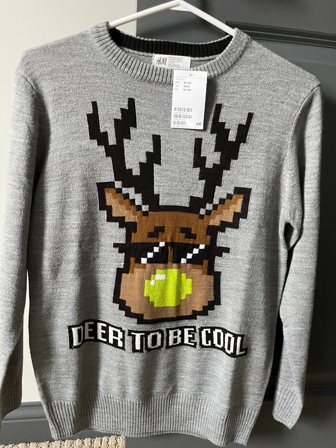 Boys Christmas sweater - NWT - size 10-12 Deer to be cool! Brand new with tags Brand: H & M Size: 10-12 kids All my items are from a smoke free home. If my ADS are up, it’s for sale still Local Sales only Buyer responsible for prompt Pickup NW Final Sales, no returns or refunds Cash or EMT only