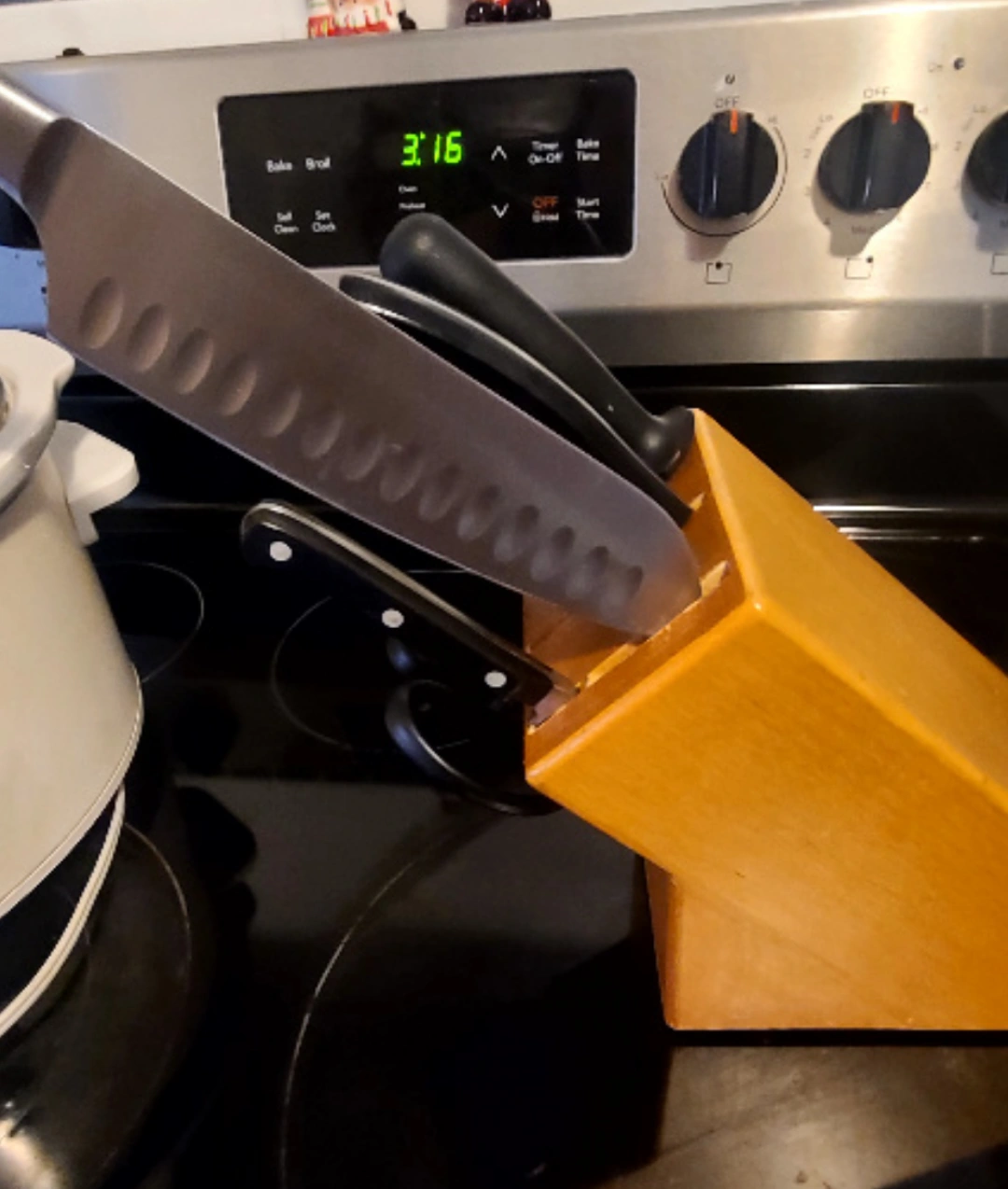 See all photos comes with what you see pick up by Kipling and Dixon area 1 scissors 1 sharpener different knives bread knife pearing knife address given once meetup is set