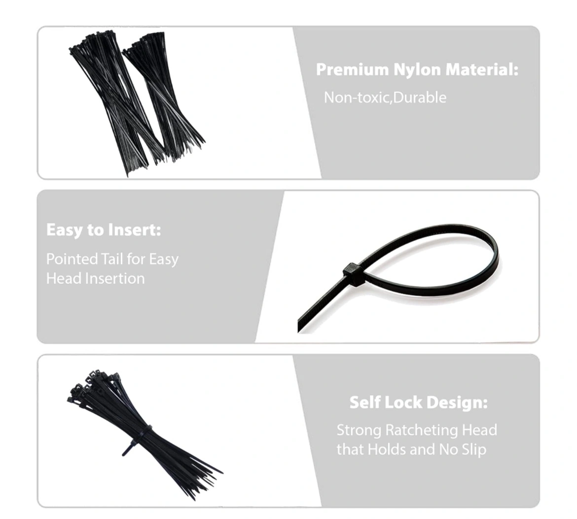 Brand new! Durable and flexible UL-approved 6/6 nylon zip ties. Supports up to 60 lbs with high toughness and tensile strength.