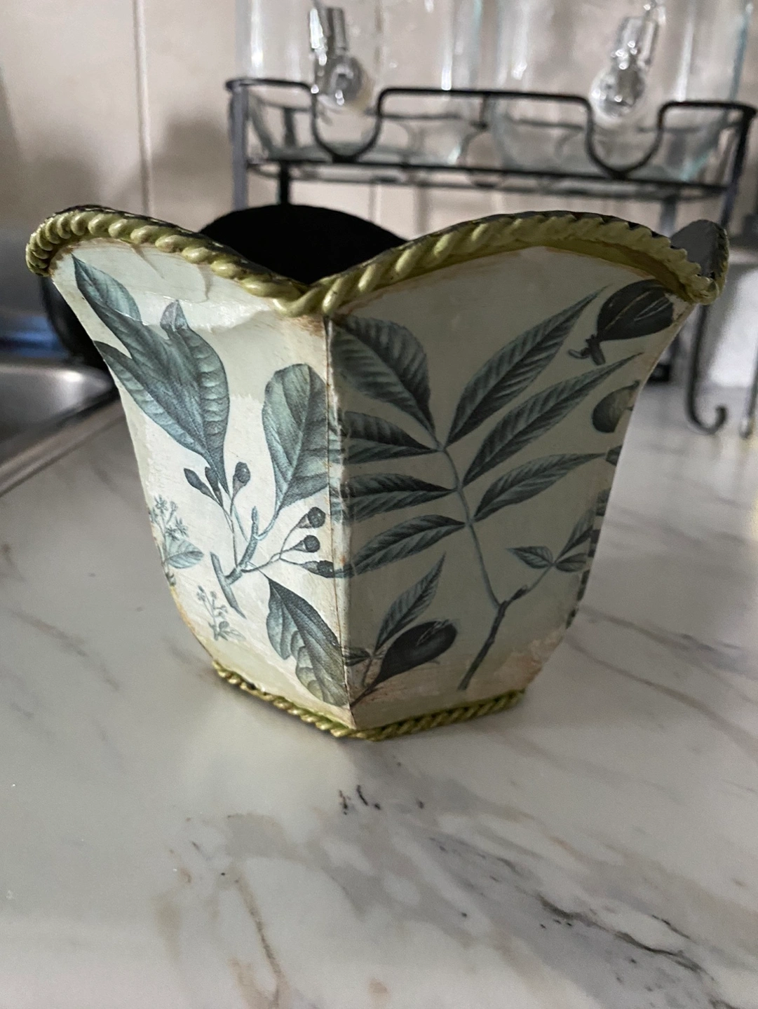 I bought it from the flower shop with some arrangement inside very beautiful but I have to many empty pots . Time for a new home .