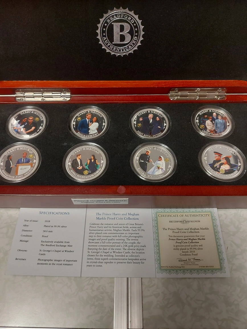 Bradford Exchange 8 Coin Prince Harry & Meghan Proof Collection