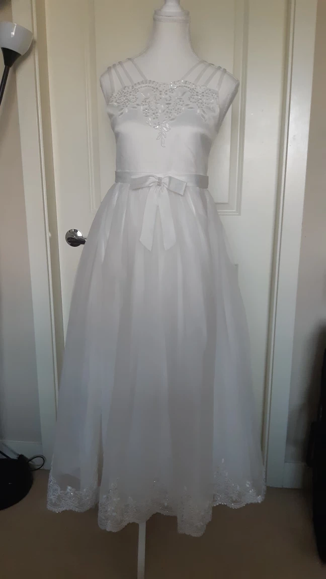 Beautiful dress. Was worn only once for a few hours. In excellent condition, like new. Great for weddings, baby shower and many more events.