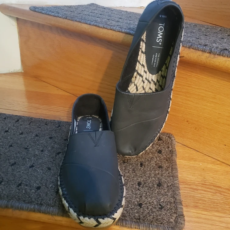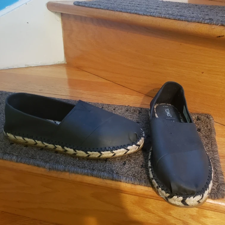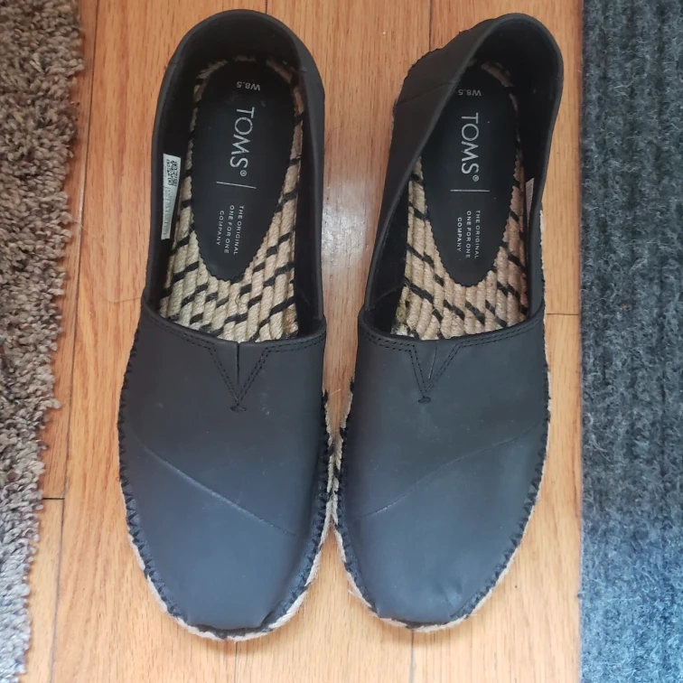 New Black Leather Toms Slip on Shoe., Size 8.5.