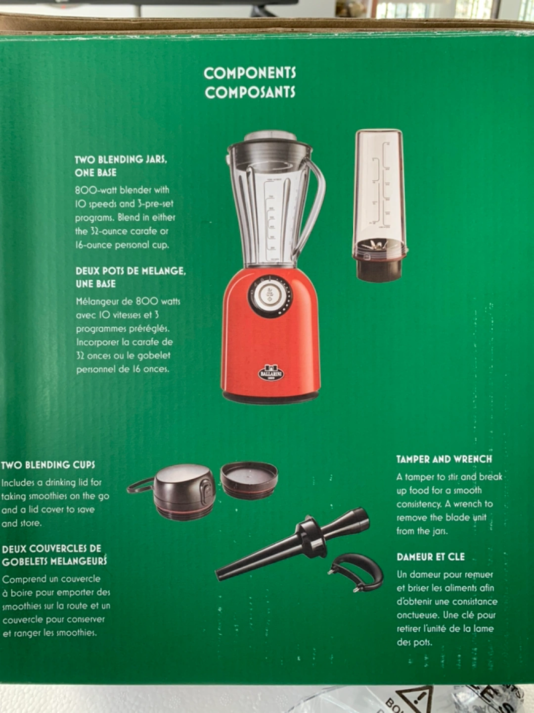 - Durable stainless-steel blade blends, purees, even crushes ice.