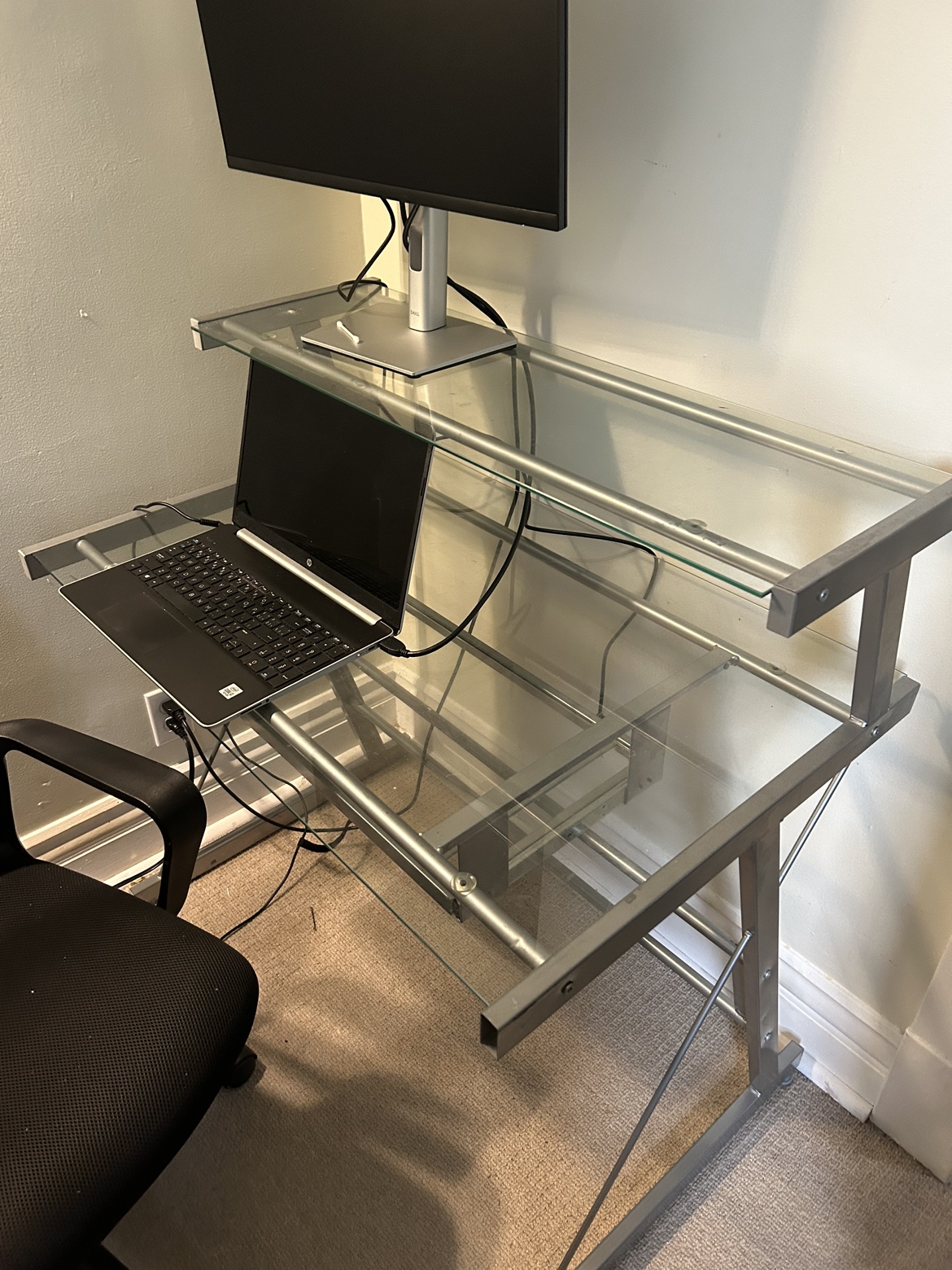 Buy & SellGlass desk for sale - MUST GOGlass desk for sale - MUST GO$100Selling due to move.ConditionGoodDimensions30 wide x 36 high x 20 deep WHERE TO MEETCheck LocationView MapSELLERSarahYonge Eglinton16816 reviews0 chats·0 favorites·68 viewsSEND CHAT TO SELLERHi Sarah! I’m interested in your listing.Hi Sarah! I’m interested in your listing.Get the Karrot app to chatSign In to chat
