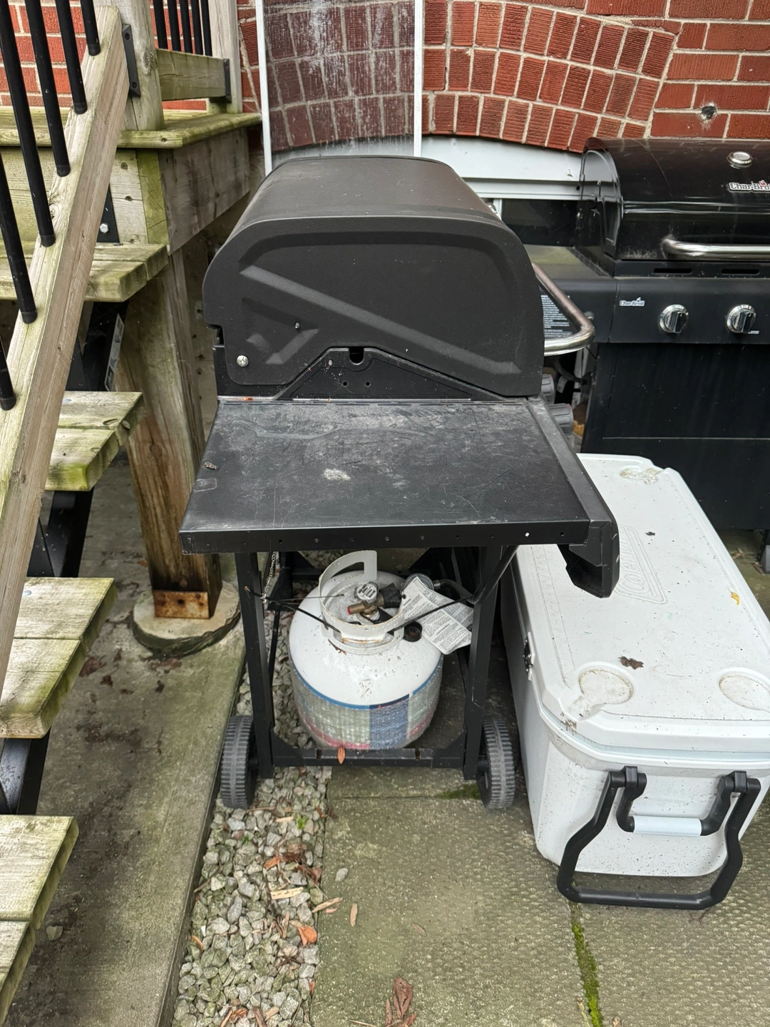 Frame has a slight brake in it. Easily fixable if you weld or could be taped up. Two propane tanks and bbq for $60. pick up mimico go area the cooler not included! Need gone asap!