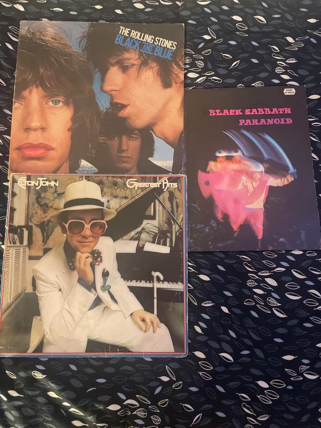 Rolling Stones “black and blue”, Elton John’s “greatest hits”, Black sabbaths “paranoid”